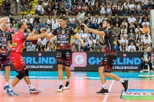 SIR SAFETY CONAD PERUGIA: De Cecco-Zaytsev, Podrascanin-Birarelli, Berger-Russell, Bari libero. All. Kovac.