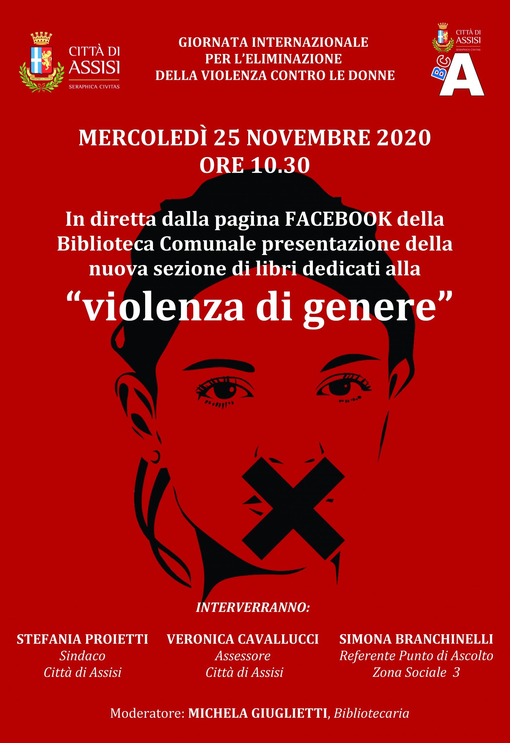 Domani, 25 novembre, è la Giornata internazionale per l’eliminazione della violenza contro le donne. L’amministrazione comunale di Assisi, in segno di sensibilizzazione, ha deciso di illuminare di rosso la Torre del Popolo: un modo questo per ricordare a tutte le donne che subiscono violenza che non solo da sole. Ma l’attività del Comune su questo tema non si ferma a questo segno simbolico: alle 10.30 nella biblioteca comunale sarà presentata la nuova sezione di libro dedicata alla violenza di genere; all’evento, che sarà trasmesso in diretta via facebook, parteciperanno il sindaco Stefania Proietti, l’assessore alle Pari Opportunità Veronica Cavallucci e l’operatrice del Punto di Ascolto di Assisi Simona Branchinelli.