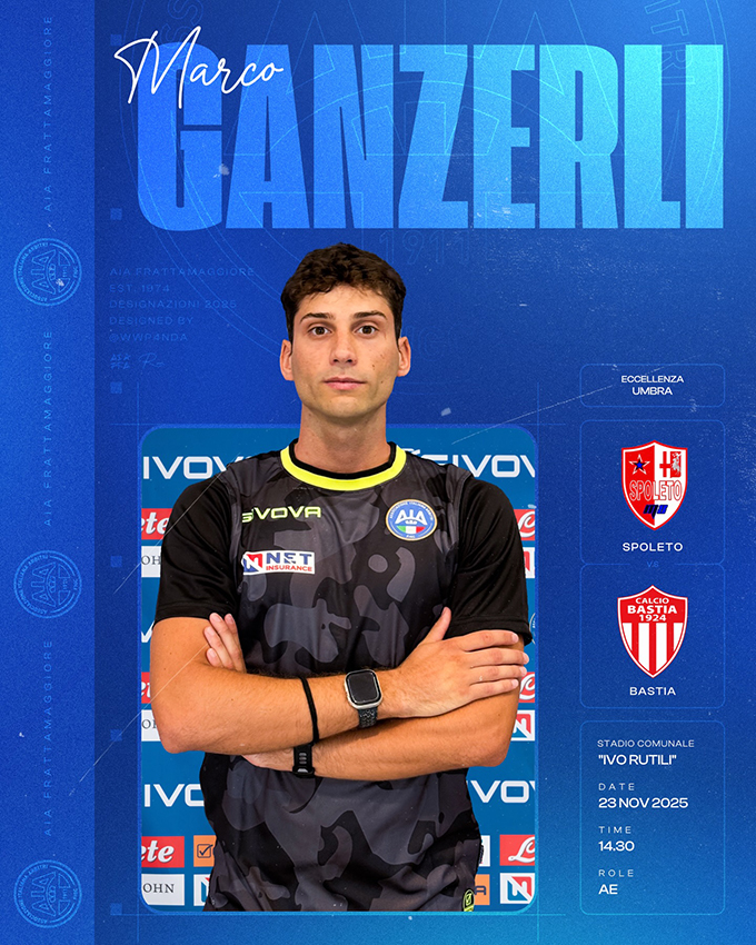 Sarà coadiuvato dagli assistenti di linea: Simone Servili della Sezione AIA di Terni Simone Polveri della Sezione AIA di Foligno