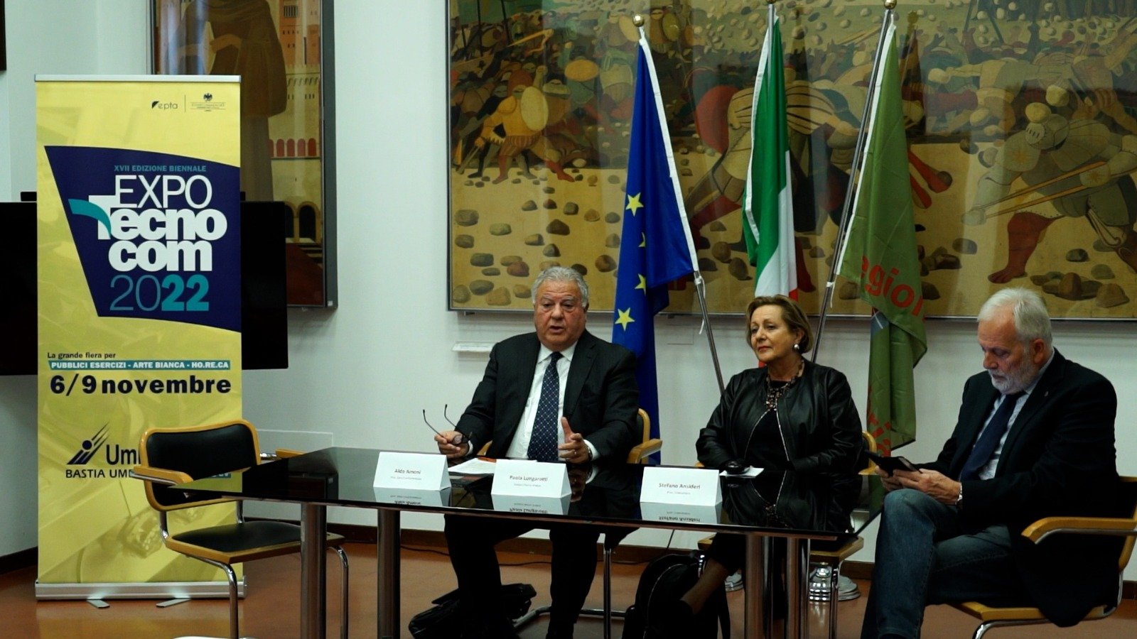 (AVInews) – Perugia, 24 ott. – Si conferma come uno degli eventi fieristici italiani più importanti nel settore professionale dei pubblici esercizi, horeca e arte bianca e torna a Umbria Fiere di Bastia Umbra da domenica 6 a mercoledì 9 novembre. È Expo Tecnocom, la kermesse ideata e organizzata da Epta Confcommercio Umbria dedicata a tecnologie, prodotti, servizi e arredi per pubblici esercizi, attività ricettive e laboratori di arte bianca. La XVII edizione dell’evento biennale è stata presentata a Perugia, lunedì 24 ottobre, da Aldo Amoni, presidente di Epta Confcommercio, alla presenza di Paola Lungarotti, sindaco di Bastia Umbra, e Stefano Ansideri, presidente di UmbriaFiere. “Expo Tecnocom – ha commentato il presidente Amoni – è il vero evento fieristico, che qualifica anche il centro fiera, un evento B2b. Domanda e offerta torneranno a incontrarsi, dopo la pausa forzata dovuta alla pandemia, e, per ripartire in grande stile, il pubblico potrà partecipare a un ricco calendario di eventi, convegni, workshop, dimostrazioni tecniche e laboratori organizzati da aziende espositrici e operatori di settore”. L’ingresso è gratuito e aperto a tutti. Nella grande esposizione fieristica troveranno posto materie prime, arredamento da interno ed esterno, impianti, attrezzature, macchinari, complementi e tanto altro, distribuiti in 4 padiglioni, per un totale di 16mila metri quadrati. 210 operatori e 300 stand. Tre le macroaree tematiche che aiuteranno i visitatori a orientarsi e nella ricerca merceologica: Food, Equipment e Contract.