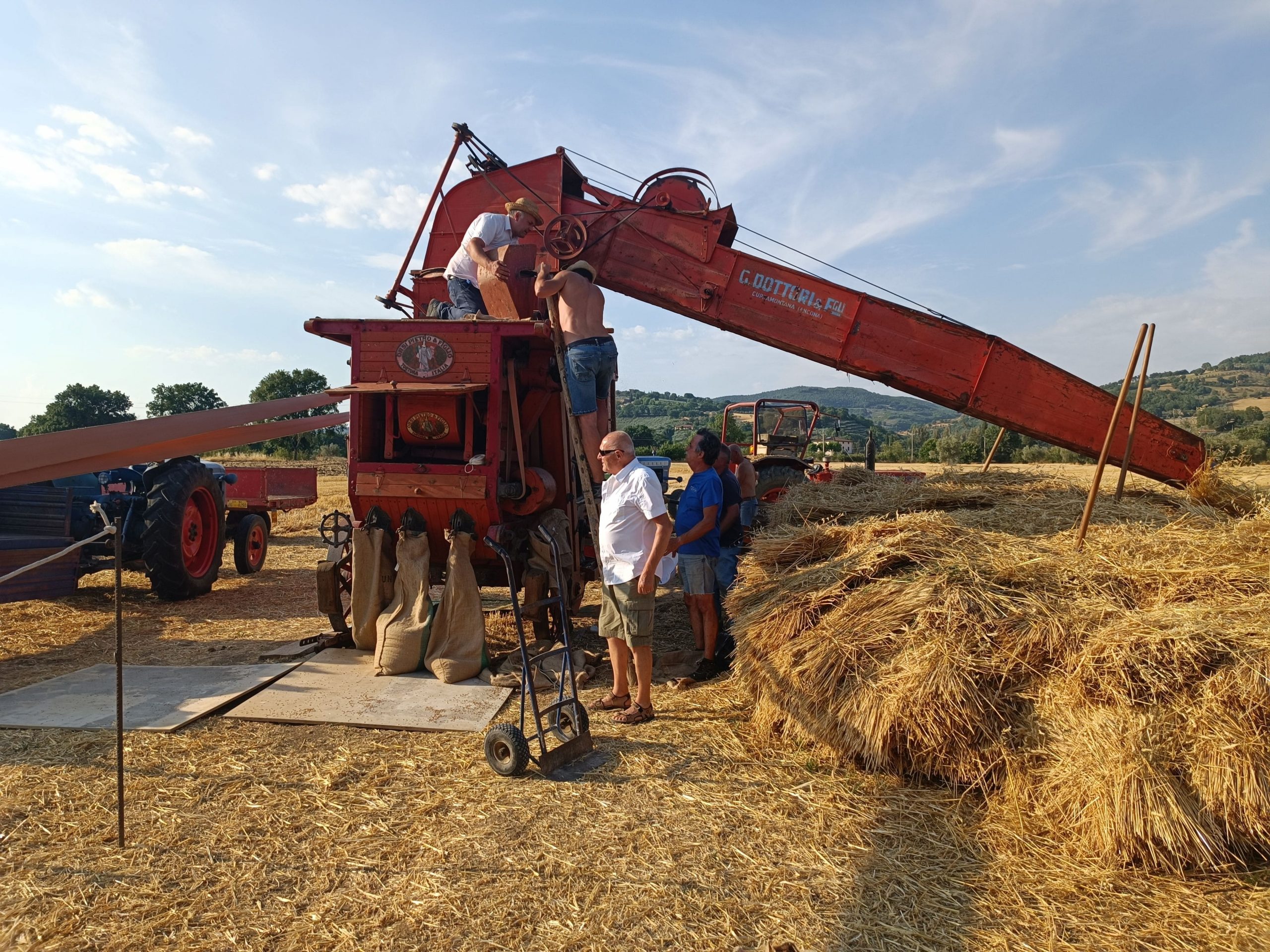 Grazie all’interesse anzi alla passione di Michele e Emanuele Mela per le attrezzature antiche della trebbiatura e alla voglia, sana, di rievocare tradizioni come la trebbiatura, sabato 23 luglio u.s. presso l’agriturismo Il Grottino, un salto nel tempo che sa di storia delle nostre tradizioni, di amore per il passato come radice del presente. Una festa che ha richiamato tanti partecipanti riscuotendo un grande successo nel rievocare autenticamente la tradizione contadina anche con un’esposizione di trattori e attrezzature contadine d’epoca dell’Associazione Automotoclub storico Assisano. Un momento di allegria con canti e stornelli popolari che oggi come ieri hanno accompagnato il lavoro dei campi. Tornare a rivivere la memoria di un momento che nella vita contadina dei nostri nonni non era solo espressione del lavoro, ma era condivisione con la famiglia e con la comunità. Riunirsi come un tempo per tramandare le usanze popolari con la “macchina da batte” con le prelibatezze classiche della trebbiatura. Sandro Marracci dell’Associazione Automotoclub Storico Assisano ha definito questa rievocazione l’anteprima di “Trattori in Festa”, l’imponente rievocazione che tutti gli anni, fatto salvo il periodo della pandemia, si è effettuata presso l’azienda agraria della famiglia Tardioli-Panzolini di Ospedalicchio in via dell’Acquedotto 5. “Sotto l’aspetto quantitativo, come pure sotto quello qualitativo, la fonte di gran lunga più importante della nostra conoscenza – a parte la conoscenza innata – è la tradizione”. (Karl Popper)26/07/2022