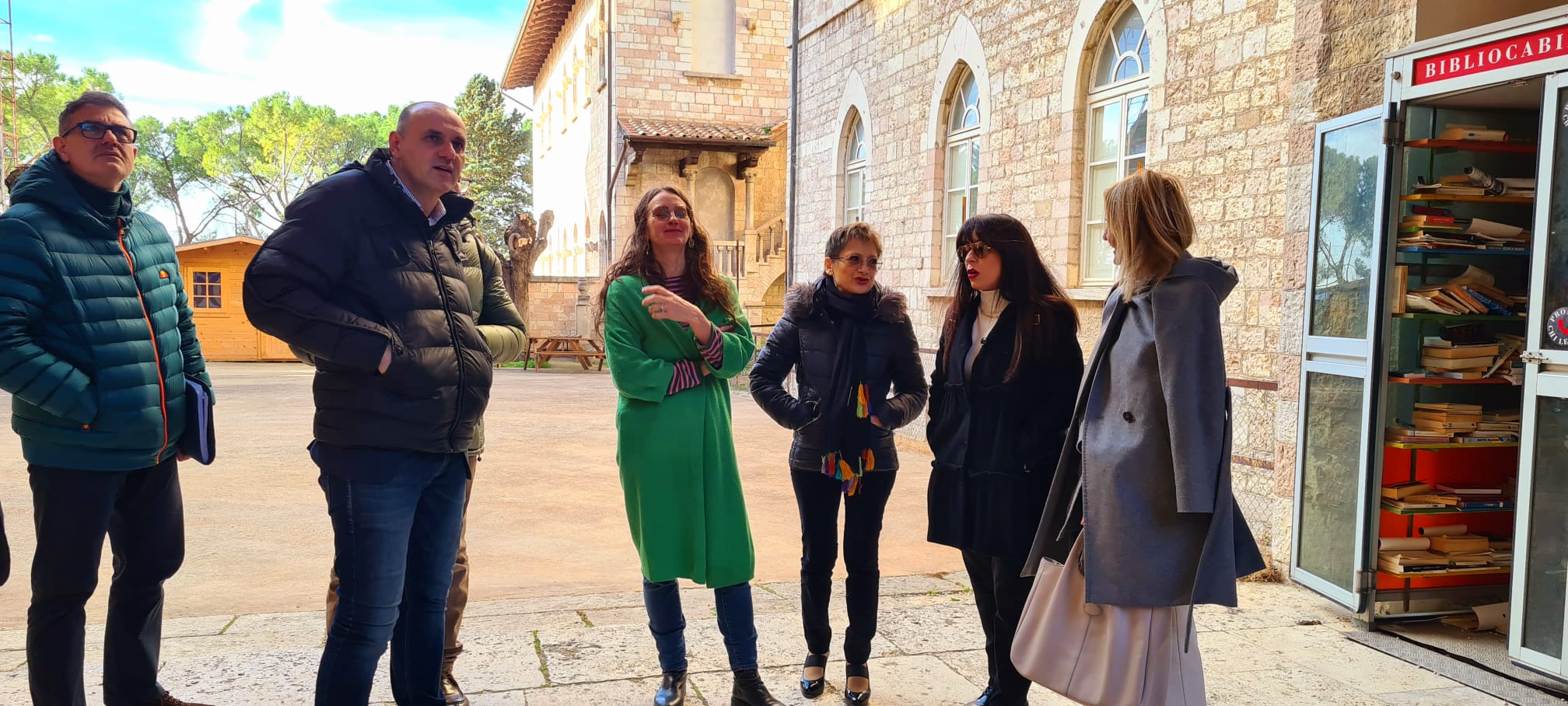 Assisi, 23 febbraio ‘24 – E’ iniziato dal Liceo Classico “Sesto Properzio”, con tappa al Pontificio Seminario Regionale Umbro “Pio XI” e si è concluso al Convitto nazionle “Principe di Napoli”, sede del liceo scientifico, il sopralluogo della Provincia di Perugia che ha visto la presidente Stefania Proietti e la consigliera delegata all’Edilizia Scolastica Erika Borghesi insieme ai dirigenti ed alcuni tecnici del settore fare il punto sullo stato dell’arte degli edifici scolastici e illustrare i prossimi interventi che interesseranno queste scuole che ogni anno vantano un numero considerevole di iscritti. Al Properzio la ‘delegazione provinciale’ è stata accolta dalla dirigente scolastica Francesca Alunni affiancata dalla responsabile per la sicurezza, Bianca Vitale. “L’incontro – ha commentato Borghesi – è stato utile anche per mettere a punto alcuni aspetti relativi al cantiere attualmente allestito insieme al titolare della ditta che sta eseguendo i lavori di efficientamento energetico”. Il sopralluogo è servito, altresì, per verificare le aree di accesso all’edificio e quelle destinate a parcheggio e si è concluso con un incontro informale con il rettore del seminario, don Francesco Verzini.