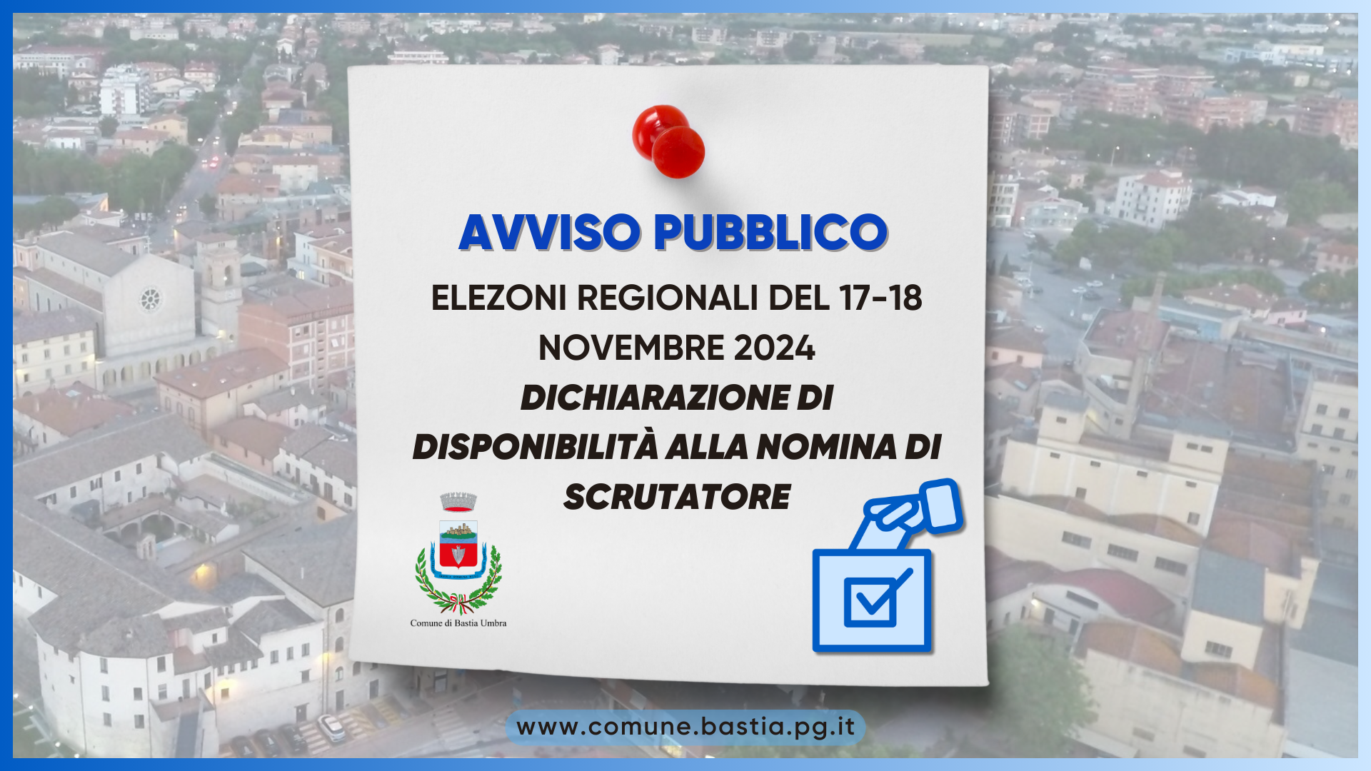 ELEZIONI REGIONALI DEL 17-18 NOVEMBRE 2024 – DICHIARAZIONE DI DISPONIBILITÀ ALLA NOMINA DI SCRUTATORE.