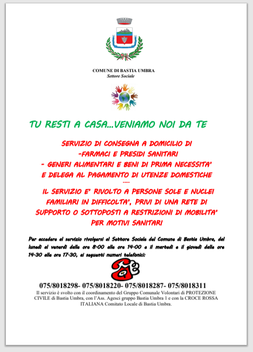 Emergenza COVID-19. “Tu resti a casa…veniamo noi da te” tra i servizi offerti dal Comune di Bastia Umbra anche la delega al pagamento delle utenze.