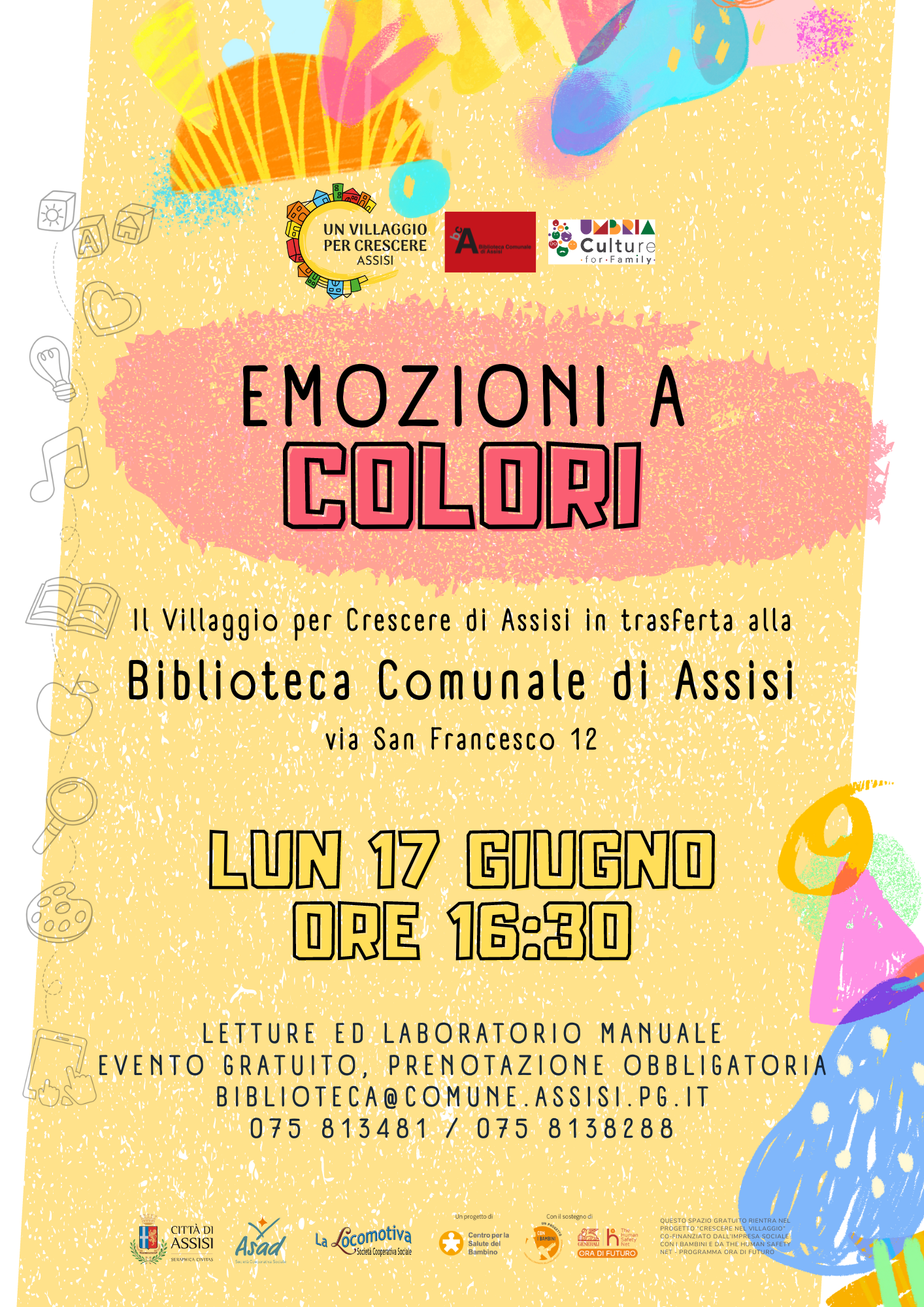 La Biblioteca Comunale di Assisi invita tutte e tutti a partecipare all’incontro con i libri e al laboratorio a cura di Un Villaggio per Crescere di Assisi Emozioni a Colori