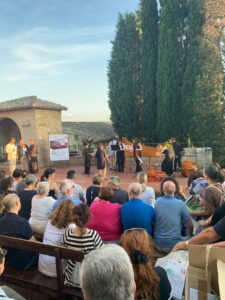 ASSISI, 24 Giugno 2019 – Nuovo ‘sold out’ per “Emozioni Umbre Paesaggi Musicali”, rassegna voluta dalla Fondazione Internazionale Assisi e dal Conservatorio Morlacchi di Perugia, con il sostegno della Fondazione Cassa di Risparmio di Perugia e con i patrocini della Regione Umbria, insieme alla Città di Assisi e ai Comuni di Bastia Umbra, Bettona e Cannara e alla Camera di Commercio di Perugia.  Al tramonto del 23 giugno, ancora una straordinaria partecipazione al concerto sul sagrato del Santuario di San Damiano. Complessivamente ai primi due concerti della rassegna, entrambi anteprima di Universo Assisi 2019,  hanno partecipato circa un migliaio di persone, non sono da Assisi e Bastia Umbra, Bettona e Cannara, i quattro comprensori interessati dalla manifestazione, ma anche da fuori comprensorio e addirittura da fuori Regione.