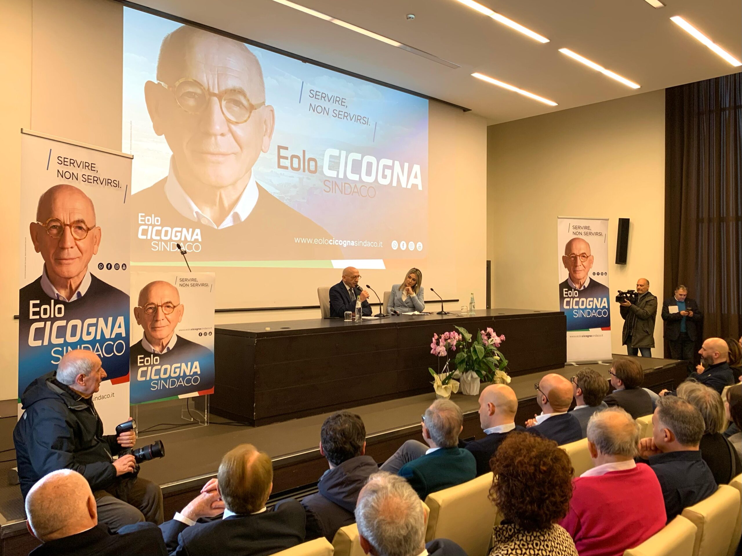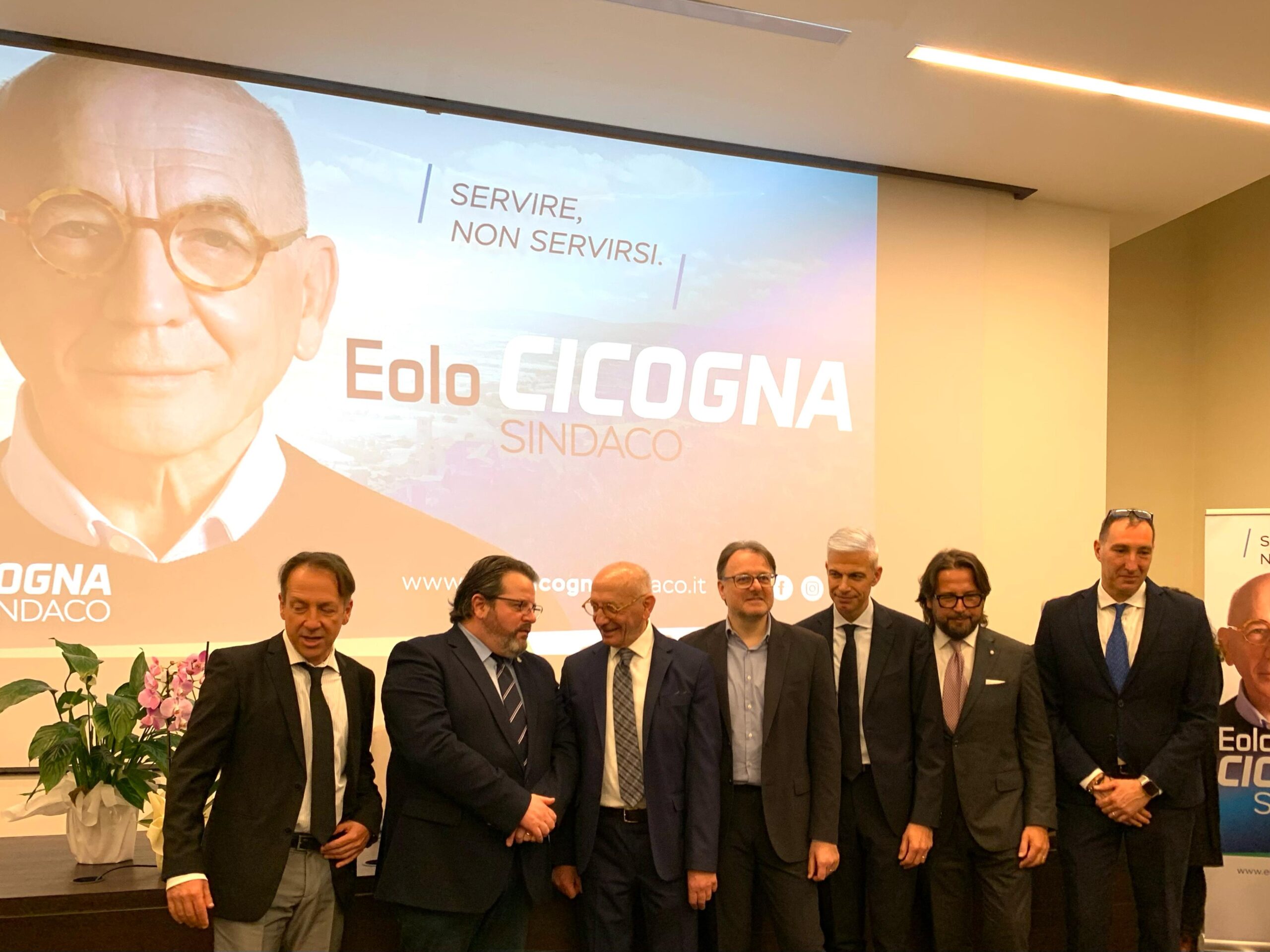 Accanto a Cicogna, oltre 40 anni di servizio presso Banca Monte dei Paschi di Siena, già tesoriere per diversi enti pubblici, in servizio nel Consiglio per gli Affari Economici della Parrocchia di Santa Maria degli Angeli e nell’Unità Pastorale dove cura la redazione annuale dei bilanci, c’erano tutti i vari rappresentanti dei partiti di centrodestra e delle civiche che lo sosterranno.