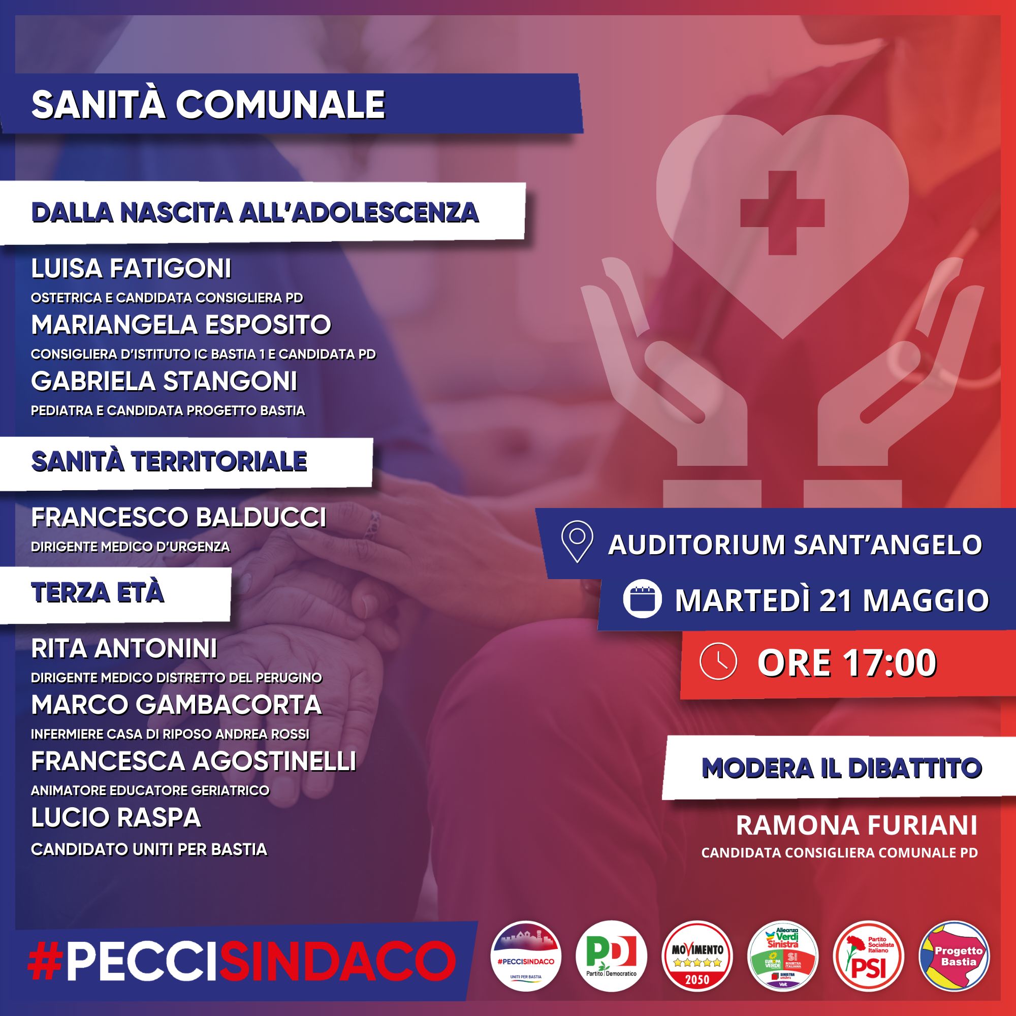 Per questo invitiamo a partecipare all’evento SANITA’ COMUNALE che si terrà domani martedì 21 maggio ore 17 presso l’Auditorium S. Angelo.