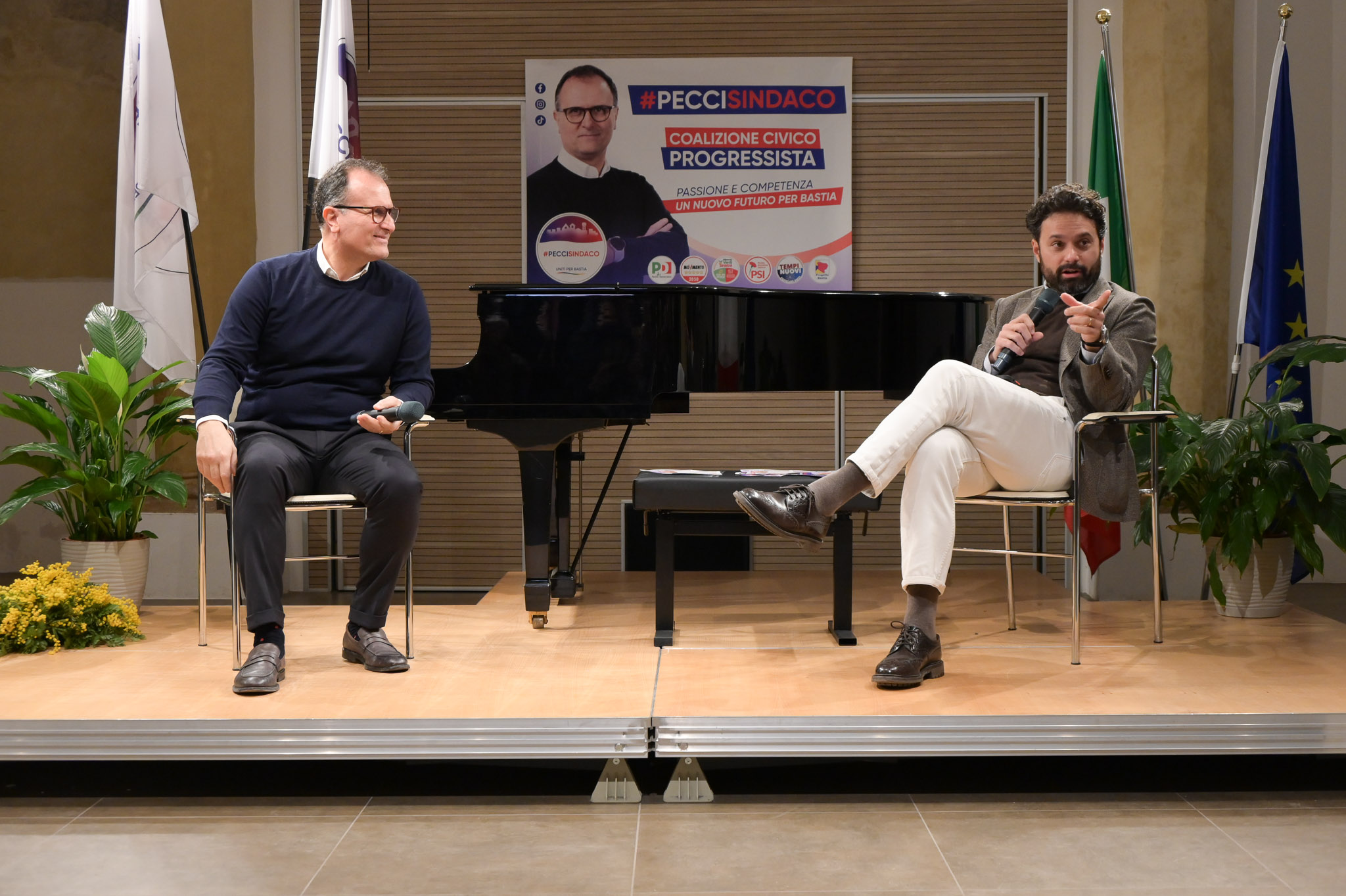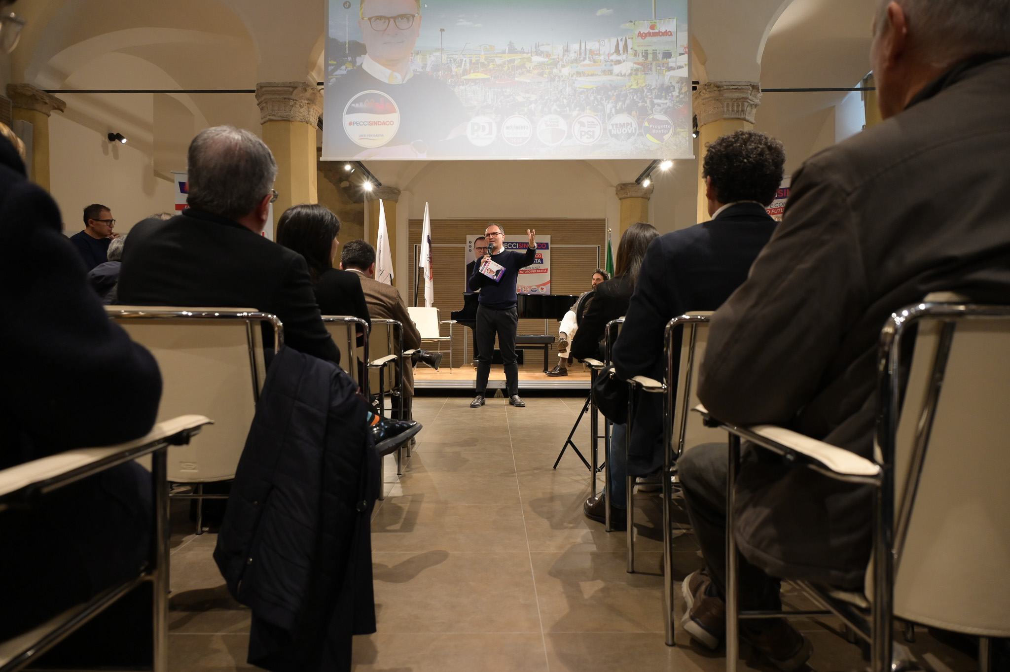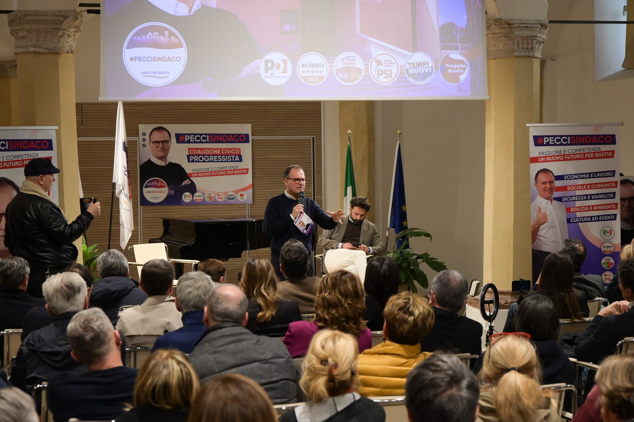 Il discorso inaugurale di Pecci arriva in un momento particolare per Bastia: il candidato della Coalizione Civico Progressista ha dato infatti il kick-off alla sua corsa elettorale, alla presenza di un Auditorium stracolmo e di Piazza Umberto I gremita.