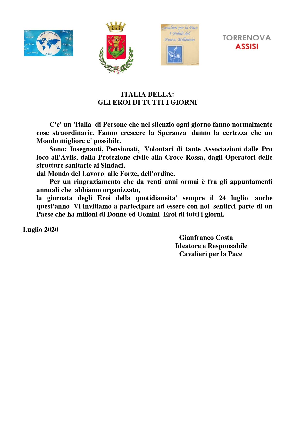 “Eroi di tutti i giorni 2020” – Il programma della manifestazione.