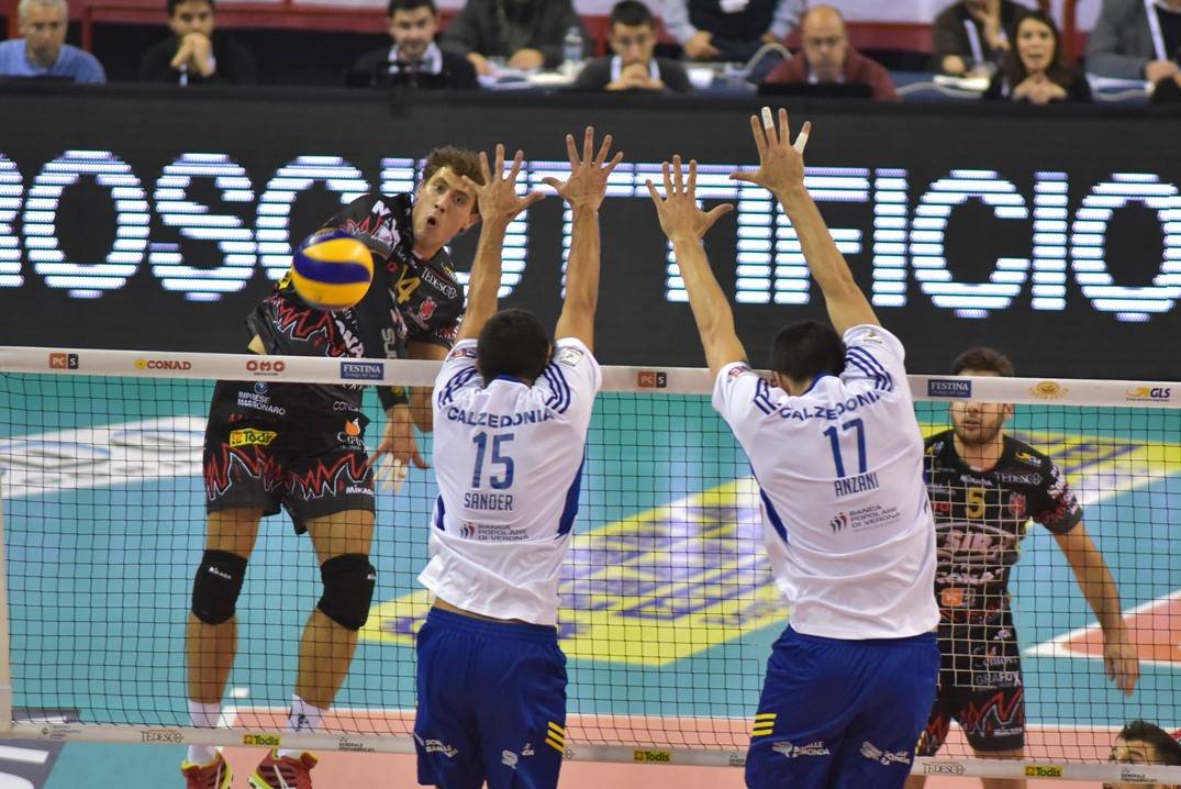 E non va assolutamente dimenticata l’ottima prestazione della Calzedonia, apparsa decisamente più in palla, molto meno fallosa (19 gli errori diretti scaligeri contro i 28 bianconeri) e con i tre attaccanti di banda Kovacevic, Sander e Starovic spine nel fianco di Perugia.