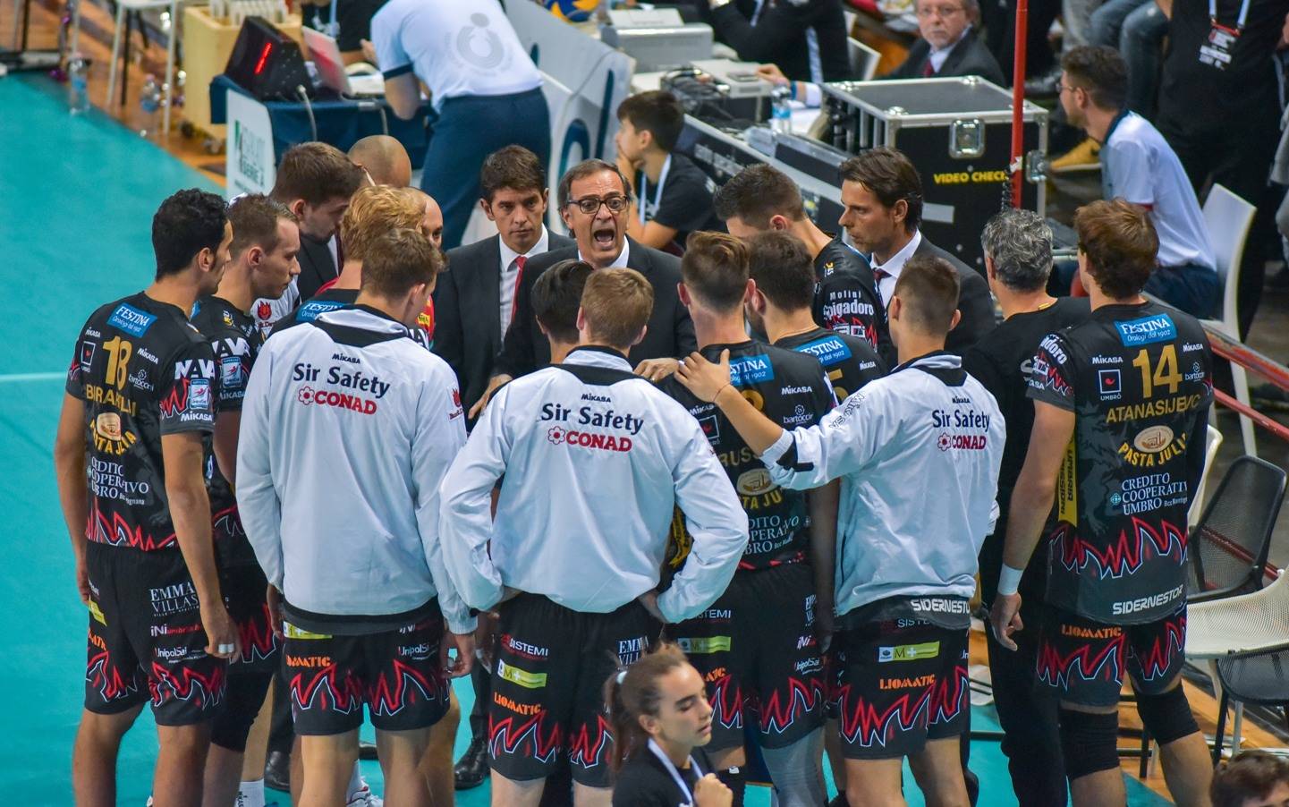 SIR SAFETY CONAD PERUGIA: De Cecco 1, Atanasijevic 15, Elia 2, Buti 5, Russell 9, Kaliberda 8, Giovi (libero), Fanuli, Fromm 2, Birarelli, Tzioumakas, Dimitrov. N.E.: Holt. All. Castellani, vice all. Fontana.