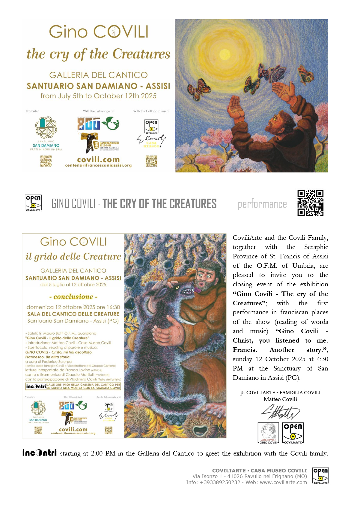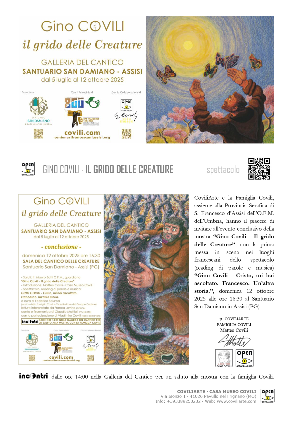 Evento conclusivo mostra “GINO COVILI – Il grido delle Creature” | SAN DAMIANO – ASSISI, 12 ottobre 2025