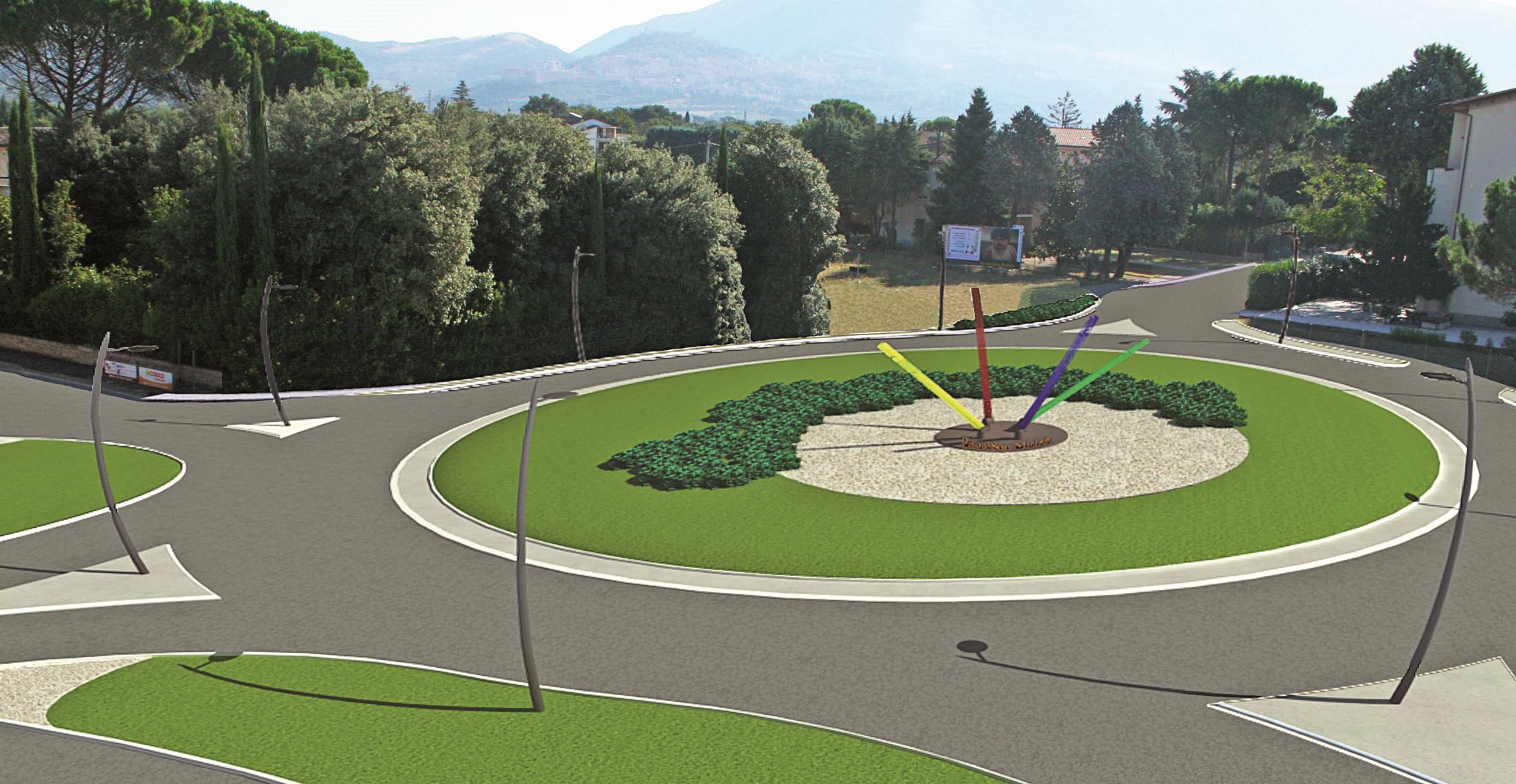 “La nuova rotonda di via Roma – spiega l’architetto Falcinelli – è una porta d’accesso alla città, in una posizione strategica al confine con il Comune di Assisi. Diventa, quindi, elemento di rappresentanza e allo stesso tempo di comunicazione”.