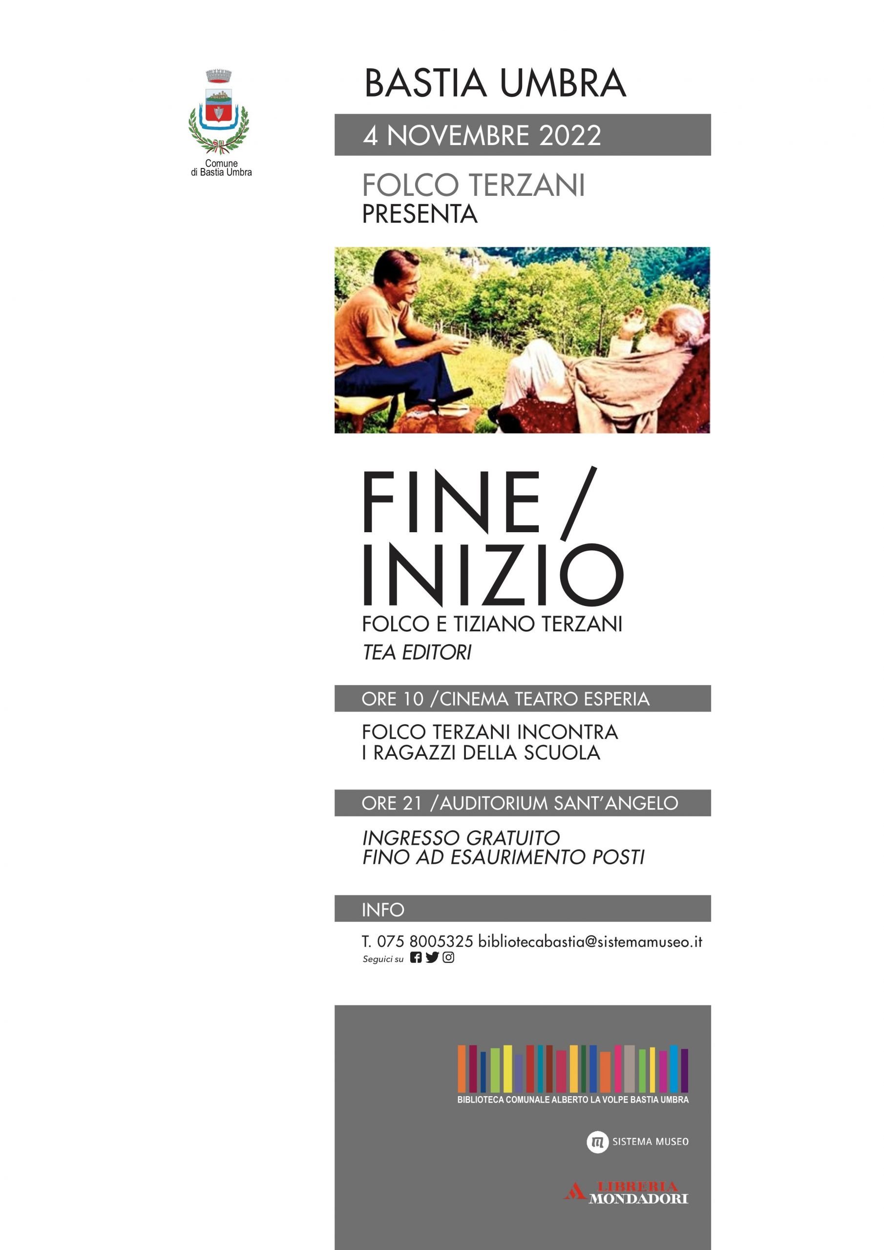 Venerdì 4 novembre 2022, Bastia Umbra ospita lo scrittore Folco Terzani per la presentazione del suo libro FINE/INIZIO di Folco Terzani e Tiziano Terzani, Tea Editori.