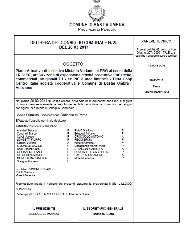 E la verità è che la nuova visione e realizzazione dell’ingresso di Bastia (polo commerciale Coop) venne pensato intorno al 2000 (amministrazioni di Sinistra), il piano attuativo fu adottato con delibera 25 del 26/03/2014, approvato definitivamente con delibera 28 del 10 aprile 2019, quando era sindaco un certo Ansideri… ricordate?