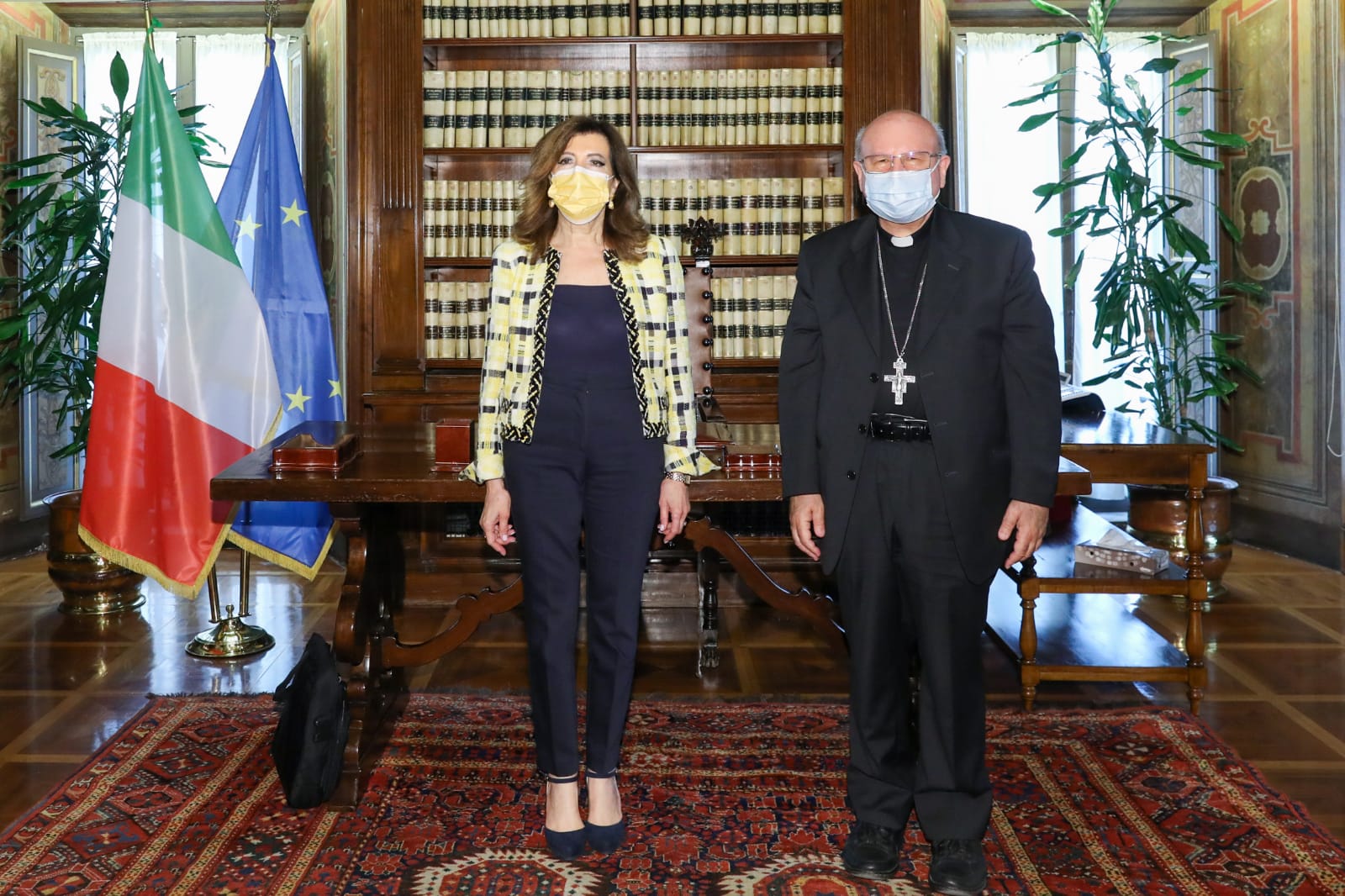 Al termine della conferenza il vescovo è stato ricevuto dalla presidente del Senato Maria Elisabetta Alberti Casellati a Palazzo Giustiniani, nella sala dove è stata firmata la Costituzione.