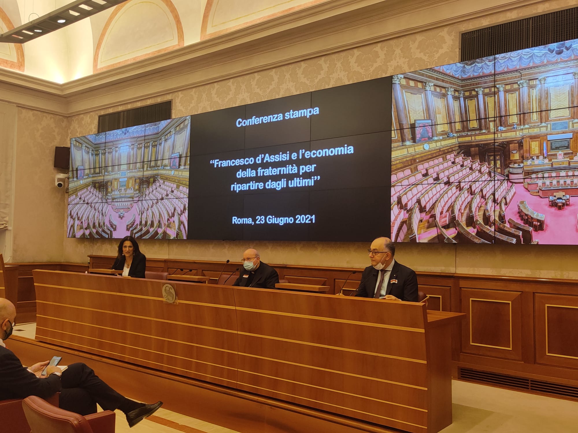 ASSISI – “Il Senato è un luogo molto adeguato per parlare di San Francesco perché Francesco è un carisma civile. Tutti i carismi sono civili, anche quelli di clausura perché vengono sulla terra per far bello il mondo”. Lo ha detto il professore Luigino Bruni, ordinario di economia politica alla LUMSA, mercoledì 23 giugno nella sala Nassirya del Senato della Repubblica a Roma, durante la presentazione dell’ultimo libro del vescovo della diocesi di Assisi – Nocera Umbra – Gualdo Tadino, monsignor Domenico Sorrentino, dal titolo: “Francesco d’Assisi e l’economia della fraternità”. Alla presentazione del volume, pubblicato da Edizioni Francescane Italiane, ha partecipato oltre all’autore anche la giornalista Safiria Leccese.
