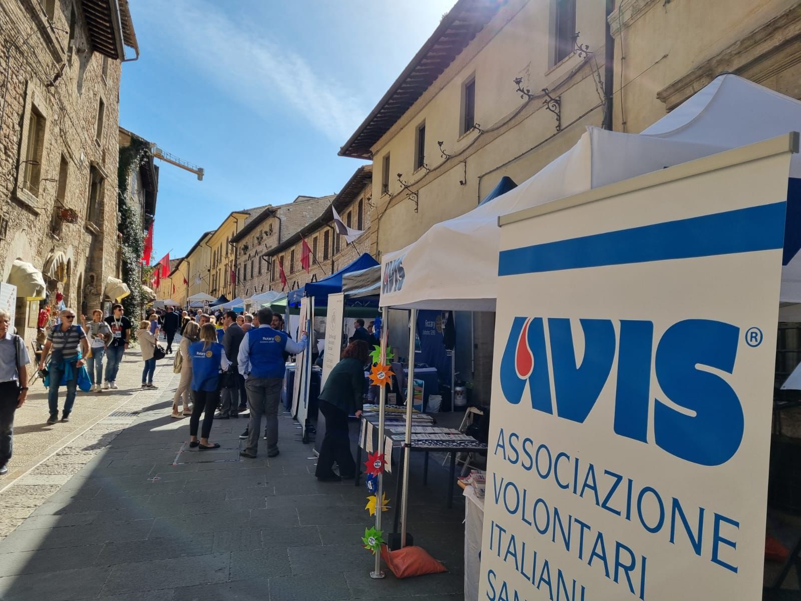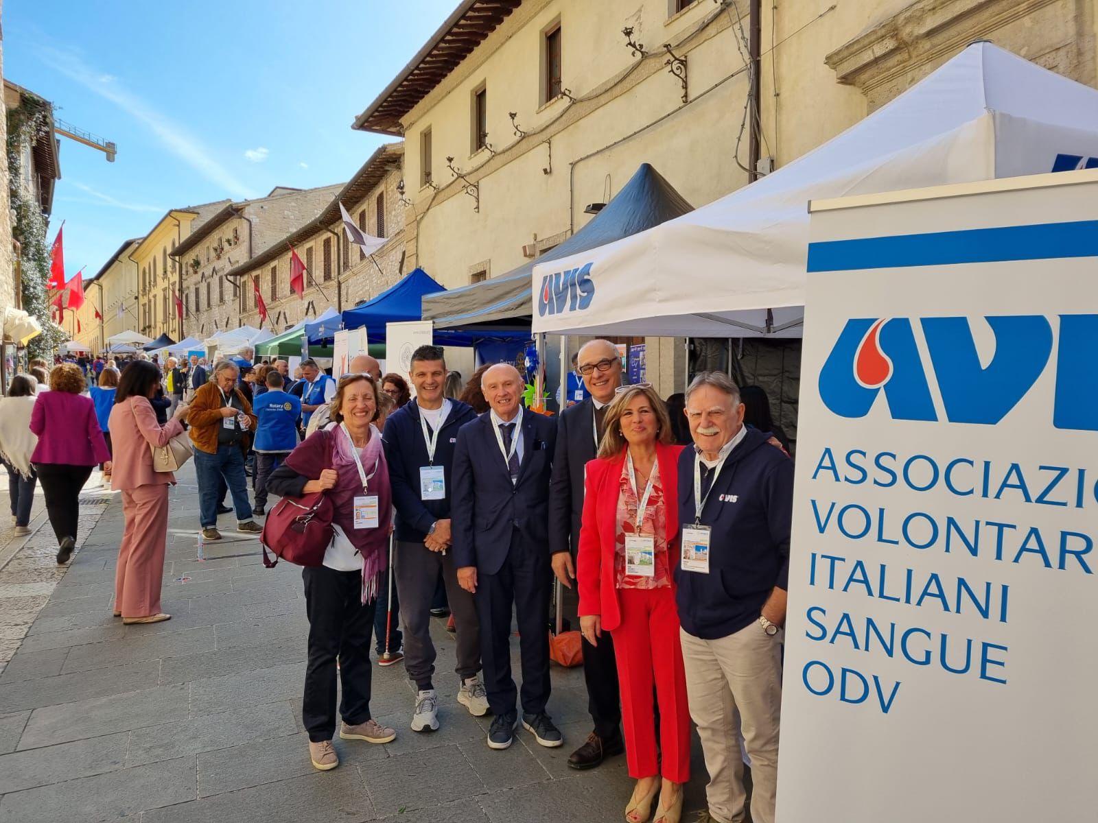 I volontari presenti con uno stand informativo per promuovere la conoscenza e l’attività dell’associazione. Con loro, il vicepresidente vicario di Avis nazionale Fausto Aguzzoni, e il presidente di Avis regionale Umbria Enrico Marconi