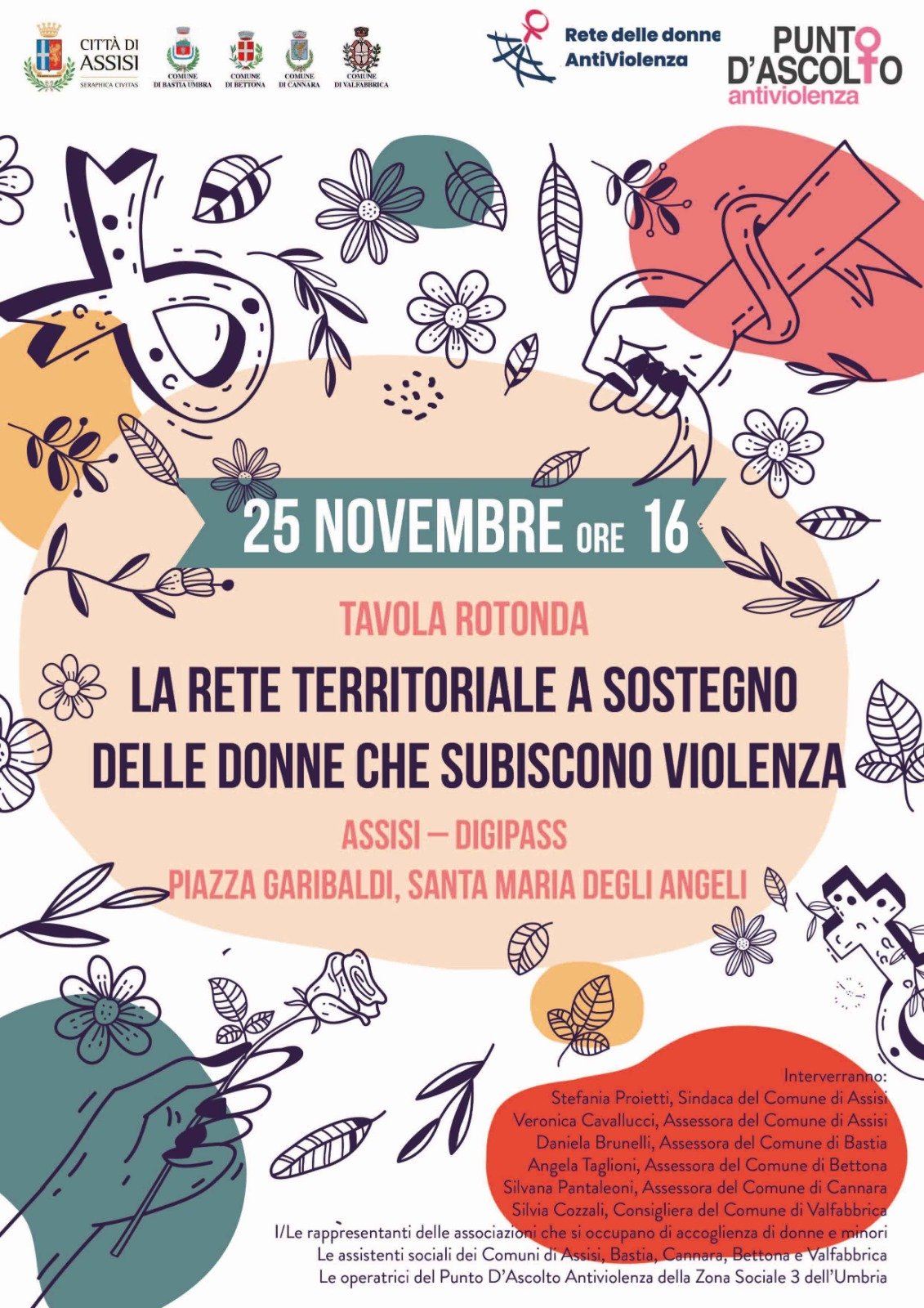All’iniziativa promossa dal Comune parteciperanno le assessore della zona sociale 3, le assistenti sociali dei comuni interessati (oltre Assisi, Bastia Umbra, Bettona, Cannara e Valfabbrica) e le associazioni che si occupano della violenza di genere.