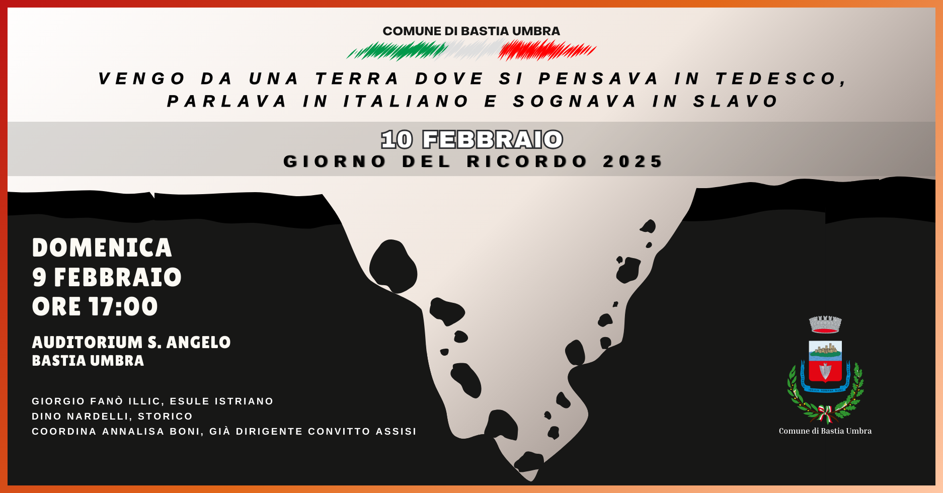 Domenica 9 Febbraio, in occasione del “Giorno del Ricordo”, l’Amministrazione Comunale di Bastia Umbra si propone di commemorare le vittime delle foibe e l’esodo forzato di migliaia di italiani dall’Istria, Fiume e Dalmazia, contribuendo a una riflessione approfondita su questa tragica pagina della nostra storia.