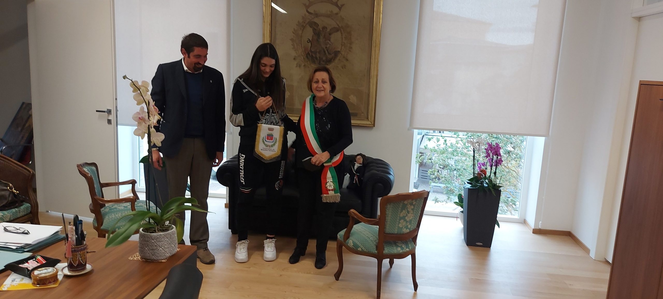 Oggi abbiamo incontrato la bravissima atleta bastiola, Giulia Patasce con i genitori Luciano e Carmen. La pallavolo  è la sua passione, ha iniziato a praticare questo sport all’età di 10 anni. E’ nata e cresciuta con il Bastia Volley, oggi a 17 anni in B2 con Bartoccini Fortinfissi School Volley Perugia.  Una giovane carriera ricca di successi, un vanto per la nostra città, la sua determinazione,  meriti sportivi  e ottimi risultati a scolastici, Giulia frequenta  il quarto anno del liceo scientifico presso  il Convitto Nazionale “Principe di Napoli” di Assisi e come ci raccontano il papà e la mamma si allena e studia con passione e volontà. Questi sono i nostri giovani, che sanno arrivare lontano con tanto impegno e dedizione. I miei complimenti, quelli dell’assessore Filiberto Franchi  e i complimenti di tutta l’Amministrazione, un grande in bocca al lupo per le sue vittorie in campo e fuori.