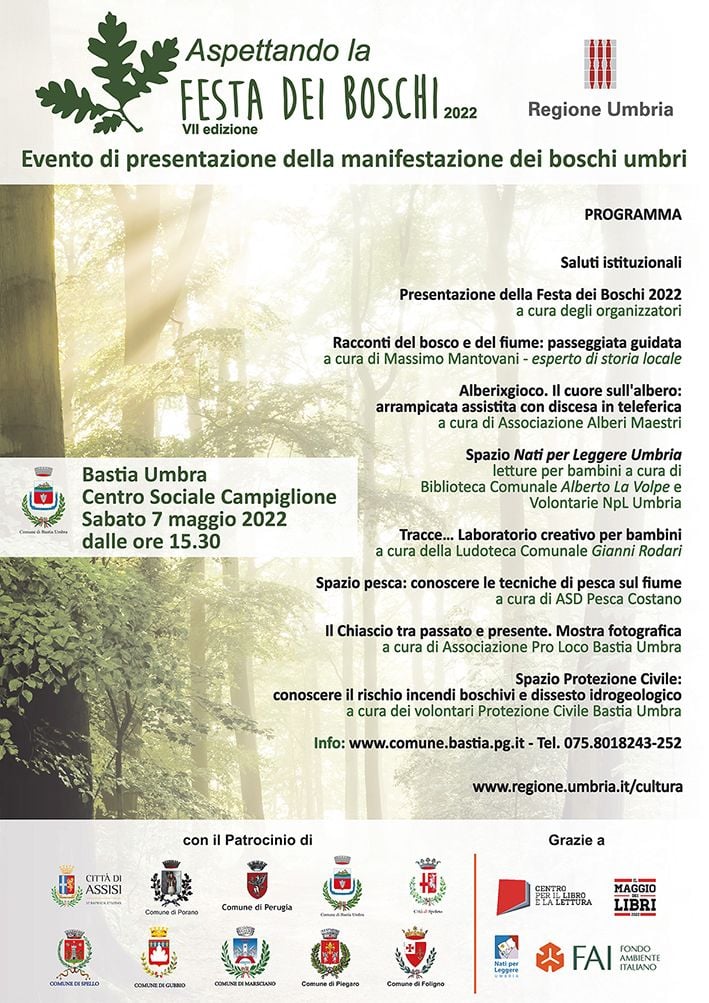 Dopo i saluti istituzionali, tante le iniziative del Comune di Bastia Umbra in collaborazione con le associazioni locali. Dai racconti del bosco e del fiume, una passeggiata guidata a cura di Massimo Mantovani esperto di storia locale, a Alberixgioco, il cuore sull’albero, un’arrampicata assistita con discesa in teleferica a cura di Associazione Alberi Maestri, alle letture per bambini della Biblioteca Comunale Alberto La Volpe e Volontarie Nati per Leggere Umbria, ai laboratori creativi della Ludoteca Comunale Gianni Rodari, fino a conoscere le tecniche di pesca sul fiume a cura di ASD Pesca Costano. Una mostra fotografica a cura dell’Associazione Pro Loco Bastia Umbra Racconterà il Chiascio tra passato e presente. Uno spazio dedicato ai volontari Protezione Civile Bastia Umbra per far conoscere il rischio incendi boschivi e dissesto idrogeologico.