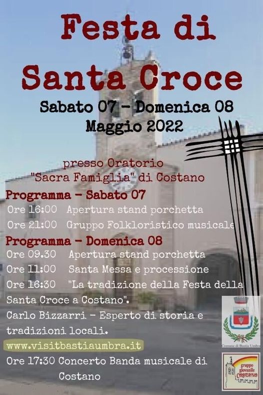 Ore 16.30 “La tradizione della festa della Santa Croce a Costano”. Sulla storia della tradizione della Santa Croce a Costano interverrà l’esperto di storia e tradizioni locali Carlo Bizzarri, con una presentazione della Web App di promozione territoriale www.visitbastiaumbra.it