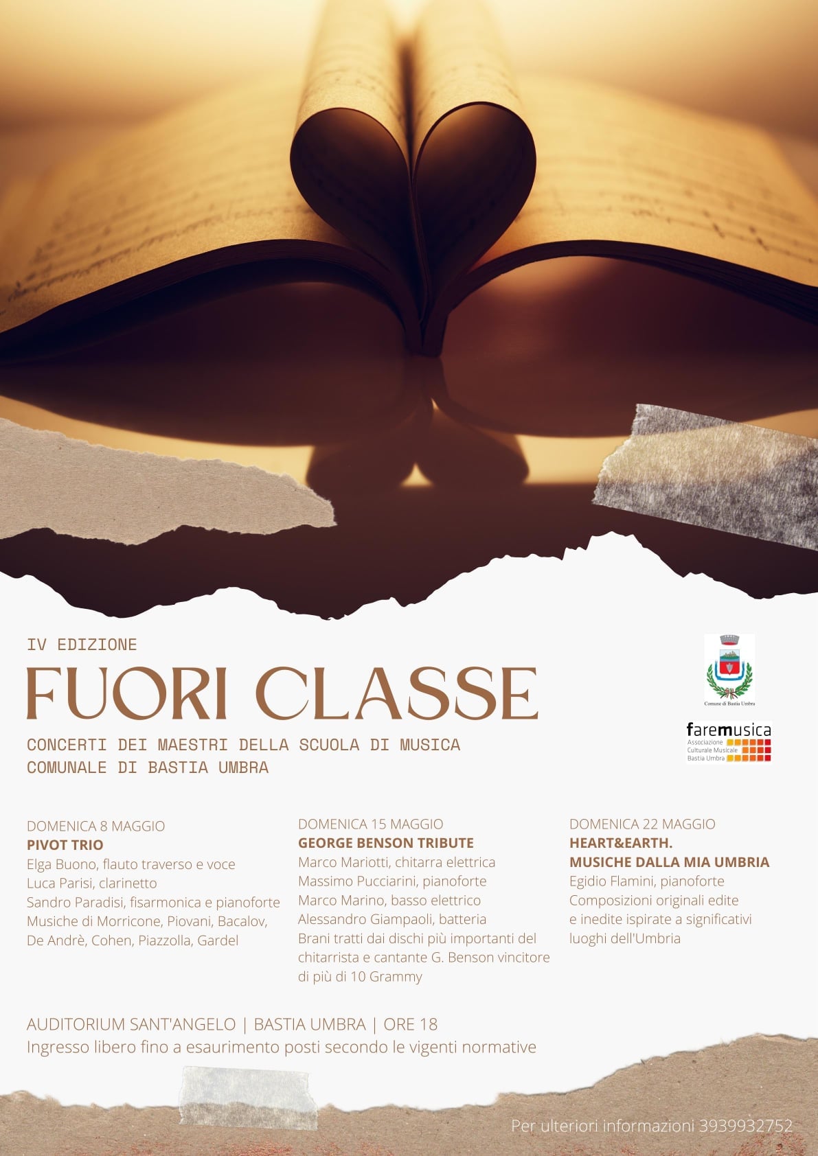 Il Primo dei 3 concerti della  rassegna organizzata dall’Associazione Faremusica che vede come protagonisti i Maestri della Scuola di Musica Comunale di Bastia Umbra. L’8 il 15 e il 22 Maggio sempre all’ Auditorium Sant’Angelo di Bastia Umbra, alle ore 18.00.