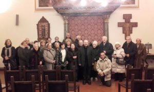ASSISI – Sono stati molti gli iscritti all’Università della Terza età di Assisi che, giovedì 14 dicembre, hanno partecipato alla lezione del corso di studi accademici che, come da programma, si è svolta nella sala della Spogliazione del Palazzo vescovile ed è stata tenuta dal vescovo della diocesi di Assisi – Nocera Umbra – Gualdo Tadino, monsignor Domenico Sorrentino. Una visita di studio durante la quale il vescovo ha parlato approfonditamente del gesto della Spogliazione compiuto da Francesco e dell’importanza della figura del vescovo Guido per avere colto in esso tutta la sua profondità. Parlando del Santuario della Spogliazione e della provvidenziale ispirazione che egli ha avuto di erigerlo monsignor Sorrentino ha spiegato che “ci troviamo in un contesto il quale costituisce la perla che per varie circostanze è rimasta per 800 anni un po’ nascosta, il Santuario in cui Francesco appare come il giovane di questa città. Questo è il momento – ha aggiunto – in cui la città di Assisi si può ritrovare in qualcosa di veramente suo. Assisi e Francesco, un binomio inscindibile, due parole che si richiamano”. Monsignor Sorrentino ha poi parlato del progetto di riscoprire il palazzo come era una volta.