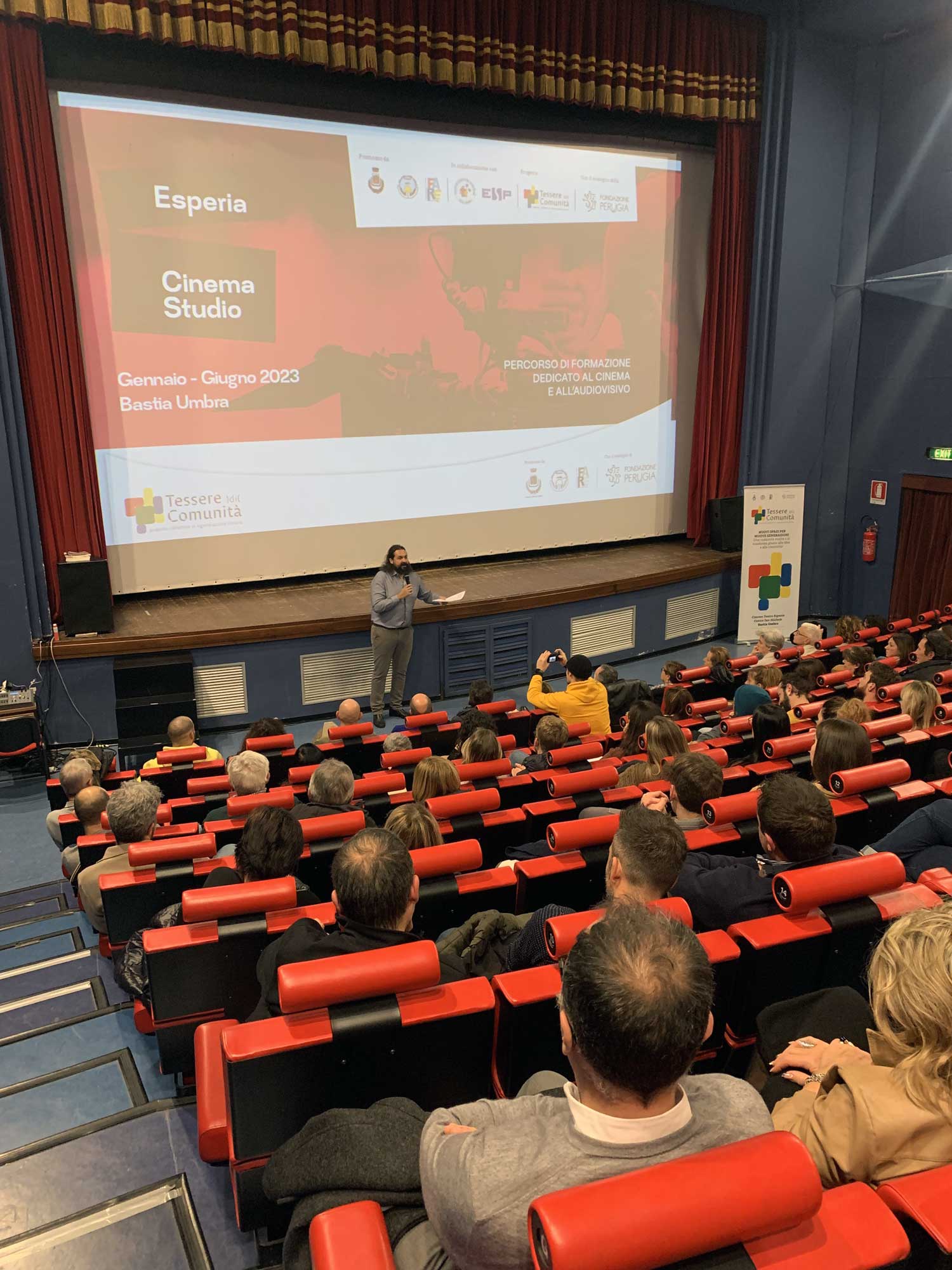 La serata è il primo incontro che dà l’avvio al progetto “Tessere )di( Comunità – pratiche collettive di rigenerazione umana”, promosso e ideato dall’Oratorio Centro San Michele ANSPI, dalla Cooperativa Sociale FARE e dal Comune di Bastia Umbra. Grazie alla vittoria del Bando 2022 “Welfare – rigenerazione di centri storici e di periferie” della Fondazione Perugia, il progetto parte dalla ristrutturazione del complesso del Centro San Michele e di parte del Cinema Esperia Bastia. Come è stato sottolineato più volte durante la serata non basta avere un contenitore rinnovato e funzionante, quello che serve sono i contenuti, le relazioni ed è proprio su questo che Tessere pone l’accento.