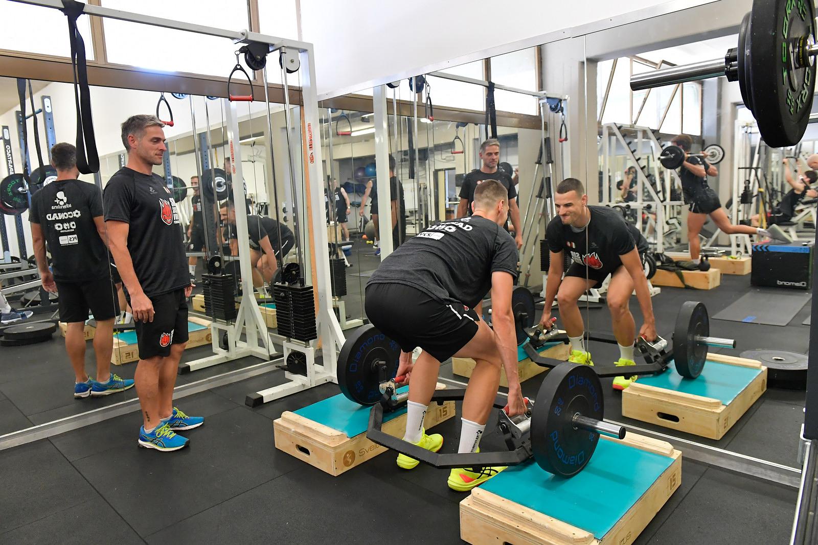 «Il lavoro in sala pesi è orientato allo sviluppo della forza massima, forza esplosiva, forza veloce-rapida (caratteristiche importanti per il nostro sport: l’idea è quella che dal primo giorno iniziamo a lavorare su quello che è e sarà “utile” e “funzionale” per ogni singolo giocatore e per la squadra, al fine di trovarsi pronti al momento giusto).