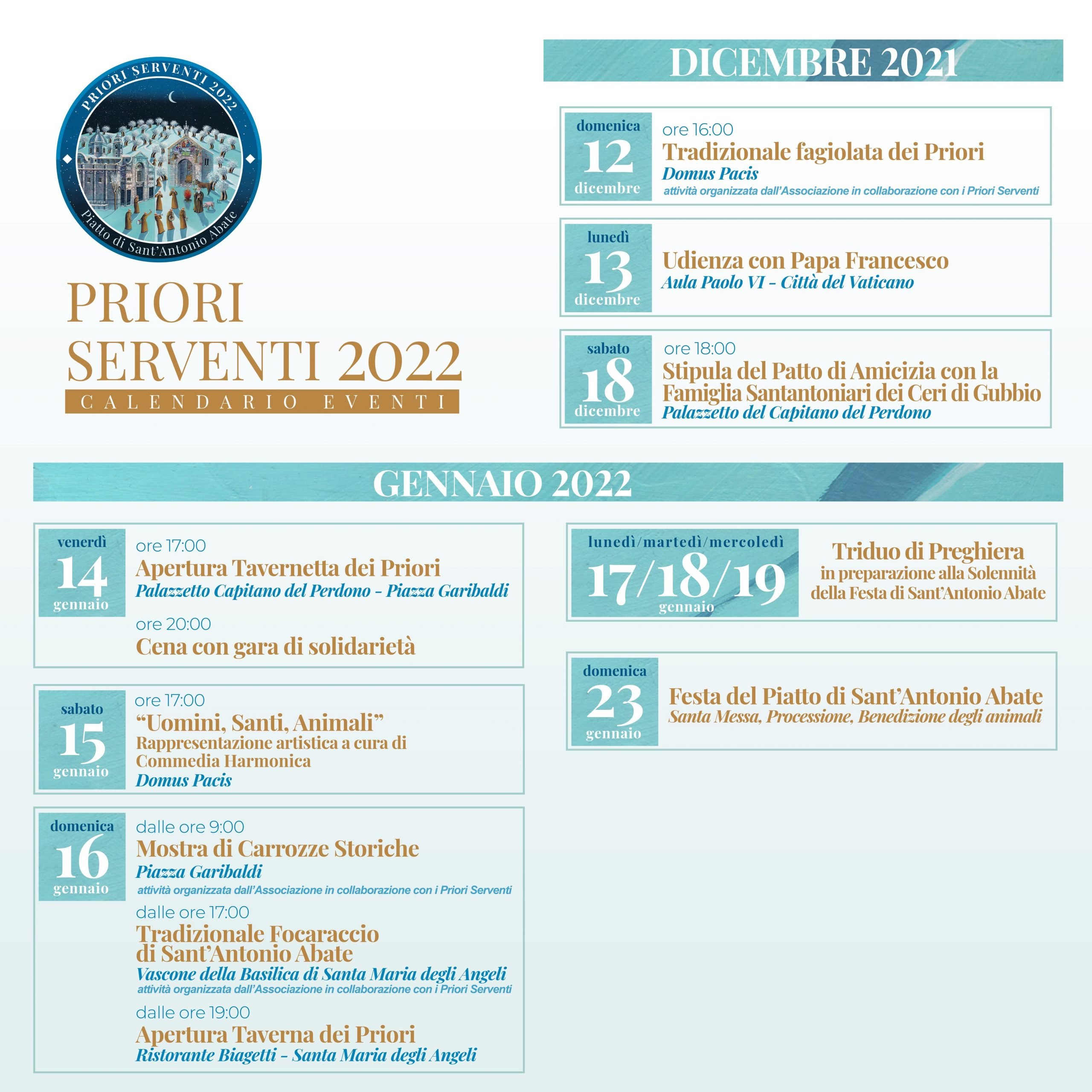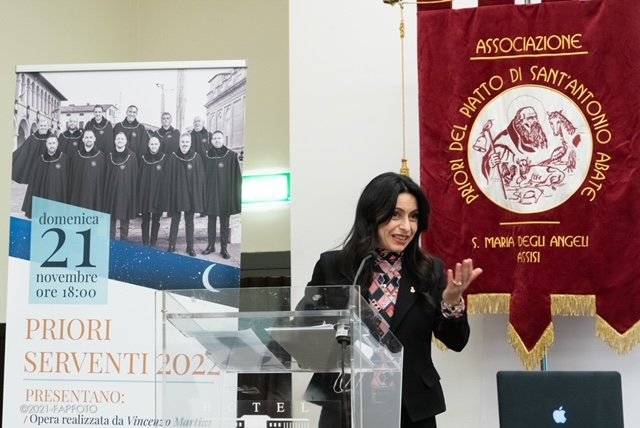 Alla presenza del sindaco Stefania Proietti, di assessori e consiglieri, di autorità civili, militari  e istituzioni religiose, i priori uscenti 2020 hanno hanno celebrato il passaggio di consegne ai Serventi 2022, secondo l’antico cerimoniale gestito dal Presidente dell’associazione Priori del  Piatto di Sant’Antonio Giovanni Granato.