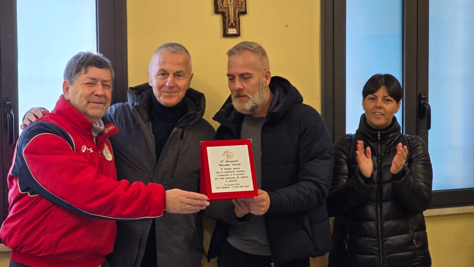 Al divertimento in campo è seguita la cerimonia di premiazione alla quale hanno partecipato i figli di Marcello Vaccai, Martina e Massimo, e la sorella Viviana.