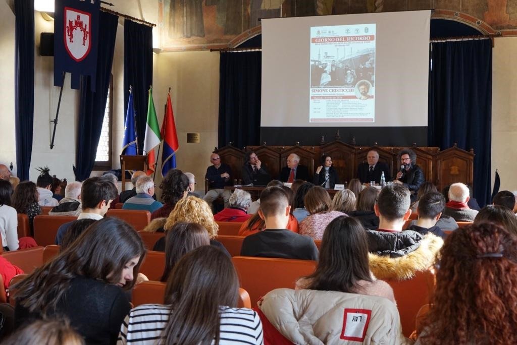 Prima delle parole di Cristicchi si è svolto un momento di riflessione con gli interventi del sindaco Stefania Proietti, Giovanni Stelli (Società di Studi Fiumani), Franco Papetti (Associazione Fiumani Italiani nel Mondo) e Paolo Anelli (Studioso dell’Esodo Giuliano-Dalmata).