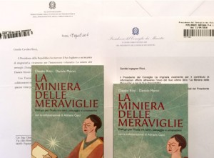 Il libro “la miniera delle meraviglie” (verrà presentato domani 23 aprile a Gubbio, ore 18, alla biblioteca Sperelliana ex Refettorio) sta ottenendo un “ampio plauso” dai lettori che, con le loro osservazioni, stanno dando un “contributo alla stesura conclusiva del testo” (infatti dopo l’itinerario umbro delle presentazioni, sino a settembre, verrà editata la “stampa definitiva” per la diffusione e promozione nazionale del libro).Claudio Ricci (nel ringraziare i co-autori Daniele Morici, Adriano Cioci, per i disegni Giulia Innocenzi e l’editore Francesco Matteucci) “cita con ampia gratitudine” anche le cortesi espressioni che, sul libro, hanno voluto invitare (con lettera di quesiti giorni) la Presidenza della Repubblica (che lo definisce “interessante”) e la Presidenza del Consiglio dei Ministri (che ne sottolinea il contributo “informativo”).