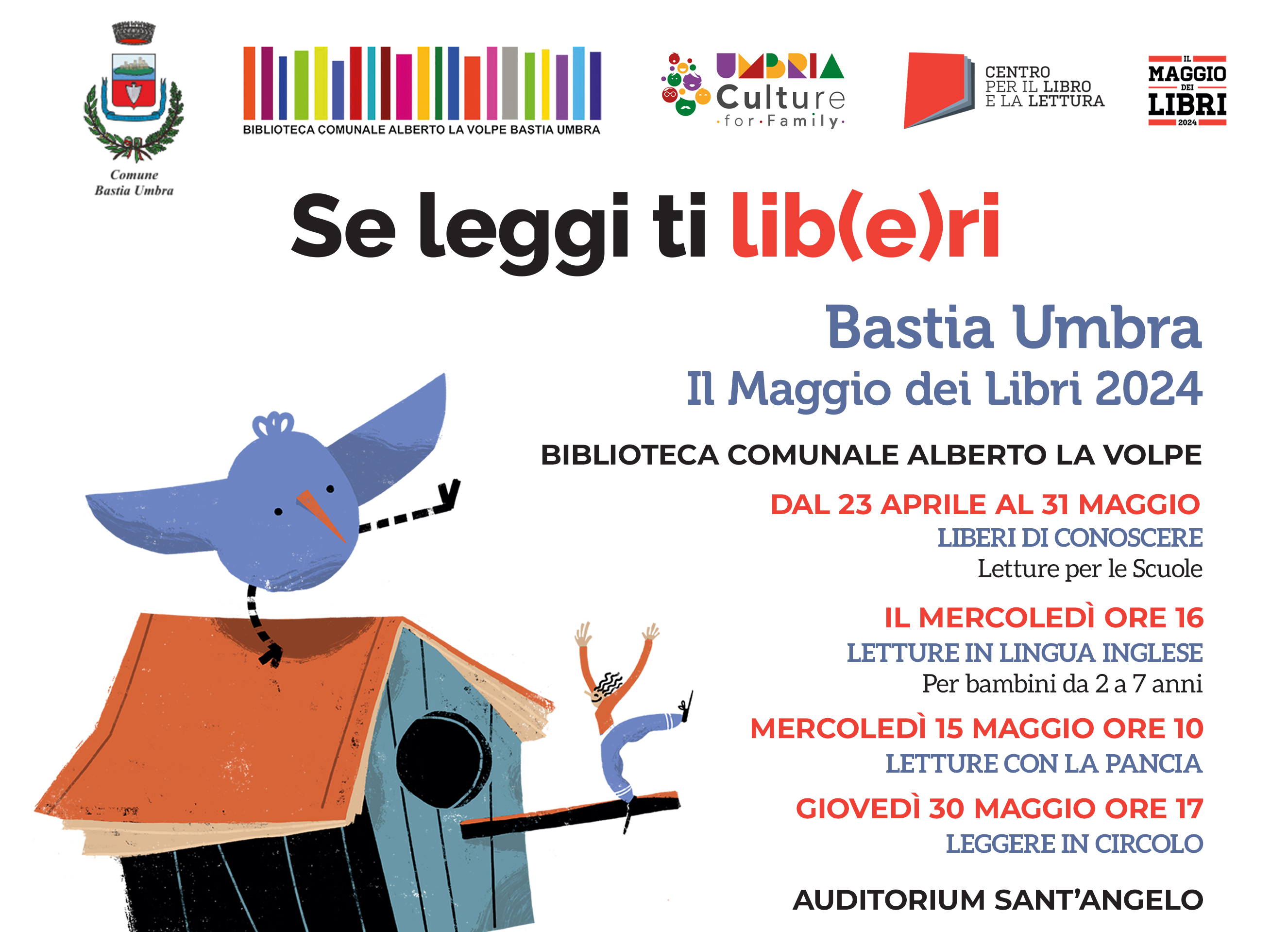 Anche quest’anno il Comune di Bastia Umbra e la Biblioteca Comunale “Alberto La Volpe “aderiscono alla campagna nazionale “Il Maggio dei Libri”.