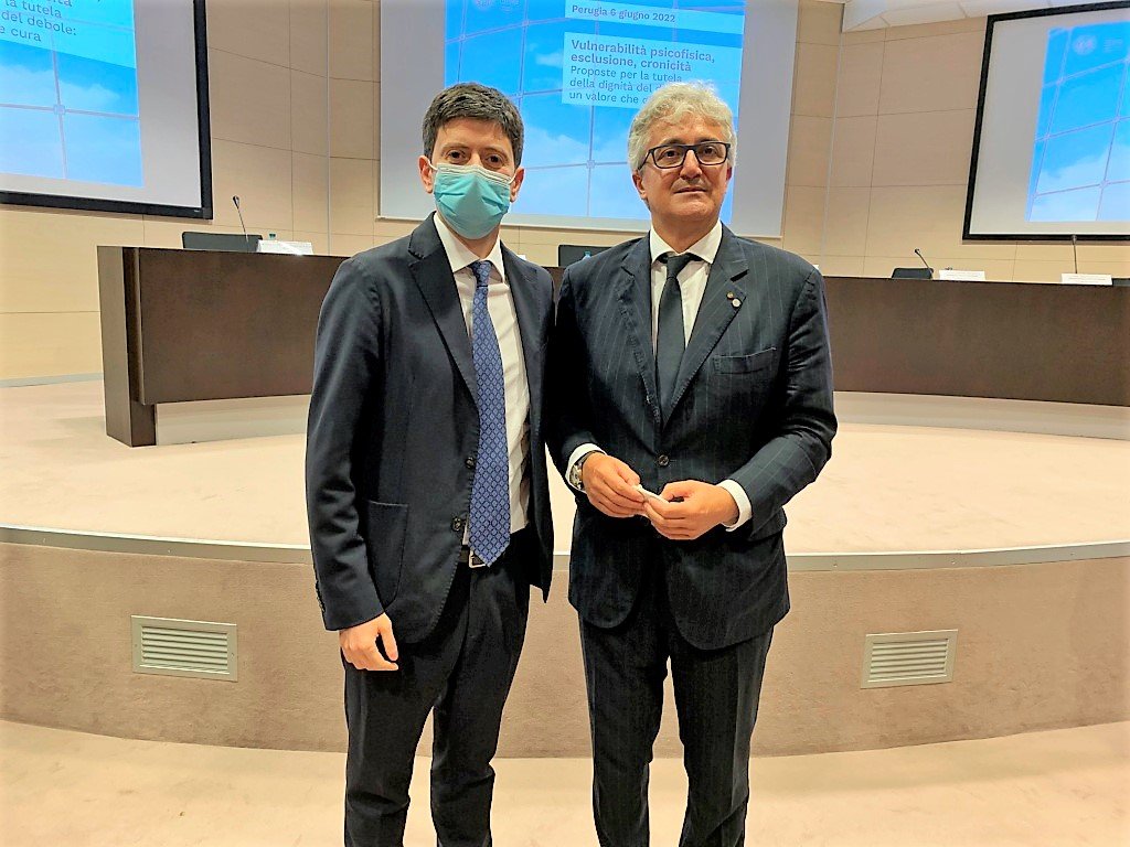 “Vulnerabilità psicofisica, esclusione, cronicità. Proposte per la tutela della dignità del debole: un valore che cura”: questo il titolo della giornata di studio che si è tenuta stamane lunedì 6 giugno 2022, presso l’Aula Magna del Dipartimento di Medicina e Chirurgia dell’Università degli Studi di Perugia, con la partecipazione del Ministro della Salute On. Roberto Speranza.