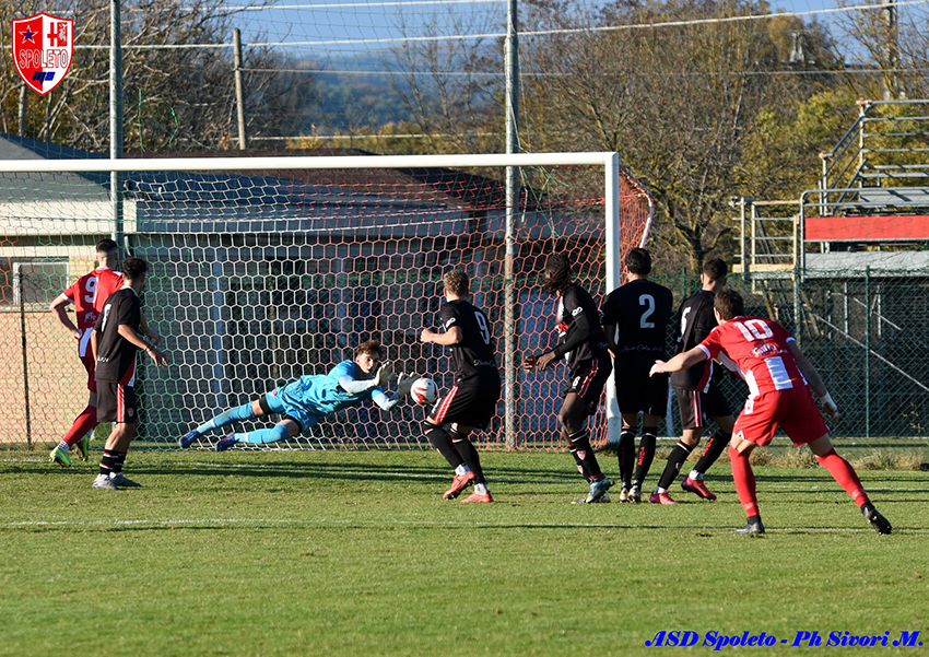 SPOLETO: Antonini, Gigliotti, Benedetti (30’ st Balzamo), Fapperdue, Boninsegni, Fabris, (12’ st Canalicchio), Rosignoli (30’ st Bartolini), Colarieti, Tramontano, Kola , Paun (12’st Ciucci 7). (A disp. Francesconi, Camara, Neri, Formichetti, Martellini). All. Isidori