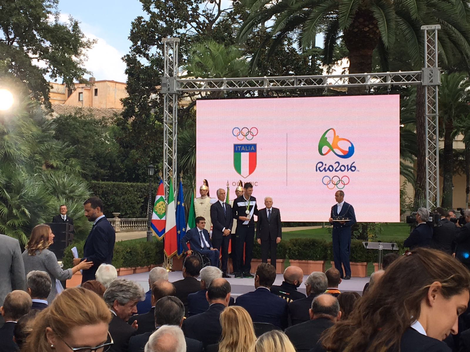 Ma la giornata odierna è stata scandita soprattutto dalla presenza del presidente Sirci e del centrale Simone Buti a Roma al Quirinale per la cerimonia di riconsegna del tricolore al Presidente della Repubblica Sergio Mattarella da parte della delegazione italiana che ha difeso i colori nazionali a Rio2016. A rappresentare la pallavolo, in un contesto che vedeva presenti le più alte cariche pallavolistiche, sportive ed istituzionali italiane come il Presidente Nazionale Fipav Carlo Magri, il Presidente del Coni Giovanni Malagò ed il Presidente del Consiglio dei Ministri Matteo Renzi, c’erano appunto il pilastro azzurro Buti ed il numero uno della Sir Safety Conad Perugia che ha portato tre propri atleti alla selezione azzurra grande protagonista alle Olimpiadi. La cerimonia è stata anche l’occasione per premiare gli atleti azzurri di tutte le discipline protagonisti a Rio2016, con Simone Buti che ha ricevuto a nome di tutta la nazionale azzurra il riconoscimento “scortato” sul palco proprio dal Presidente del Coni Malagò e dal Presidente della Repubblica Mattarella e con il presidente Sirci visibilmente orgoglioso ed onorato di poter presenziare ad un evento di così grande importanza (era presente anche il Presidente Fipav Umbria Giuseppe Lomurno) che dimostra una volta in più il sempre maggiore richiamo della pallavolo maschile a Perugia, città che i Block Devils rappresentano al meglio in Italia ed in Europa.