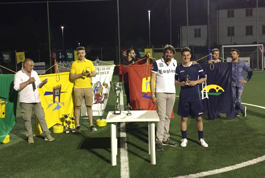 Successivamente si è svolta la finale del torneo di calcio a 8 maschile con i medesimi rioni finalisti. Da una parte il rione Portella allenato da Davide Falcinelli, dall’altra il rione Moncioveta guidato da Federico Coraggi. Dopo aver dominato il girone di qualificazione, il rione capitanato da Stefano Lombardi ha legittimato i favori del pronostico con un primo tempo impressionante sancito dai gol di Matteo Galli, Vincenzo Ravo e Luca Ubaldi (3-0, ndr). Ma, come nel precedente femminile, il carattere monciovetano non può mai essere dato per vinto. Così, quasi inaspettatamente, Marco Raspa, Emanuele Sdringola e Policarpo Marziale hanno incredibilmente riacciuffato il match (3-3). Il pareggio sembrava essere l’epilogo finale con relativi rigori ma, ad un minuto dal termine, una splendida punizione di Michele Battistelli ha portato nuovamente in vantaggio il Rione Portella (4-3). Infine, a tempo praticamente scaduto, Luca Ubaldi ha chiuso definitivamente il match sul 5-3.