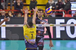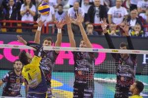 Due set con i Block Devils che dirigono le operazioni sfruttando le armi del servizio (6 ace) e del muro (8, sui 12 totali) e facendo leva su percentuali offensive ben sopra il 50% di efficienza. Diverso il secondo parziale con Castellana Grotte, con Cazzaniga in campo al posto di Tzioumakas, più efficace in fase di cambiopalla. I pugliesi arrivano fino al 20-24, poi esce l’Mvp del match Aleksandar Atanasijevic. L’opposto serbo (21 punti con 3 ace, un muro ed il 63% in attacco su 27 palloni) trova una grande serie al servizio, Podrascanin (gettato nella mischia da Bernardi) fa il resto sotto rete e la Sir porta tutto ai vantaggi dove prima annulla altri tre set point, poi decidono uno dei cinque muri della partita di Anzani ed il contrattacco vincente proprio di Atanasijevic.