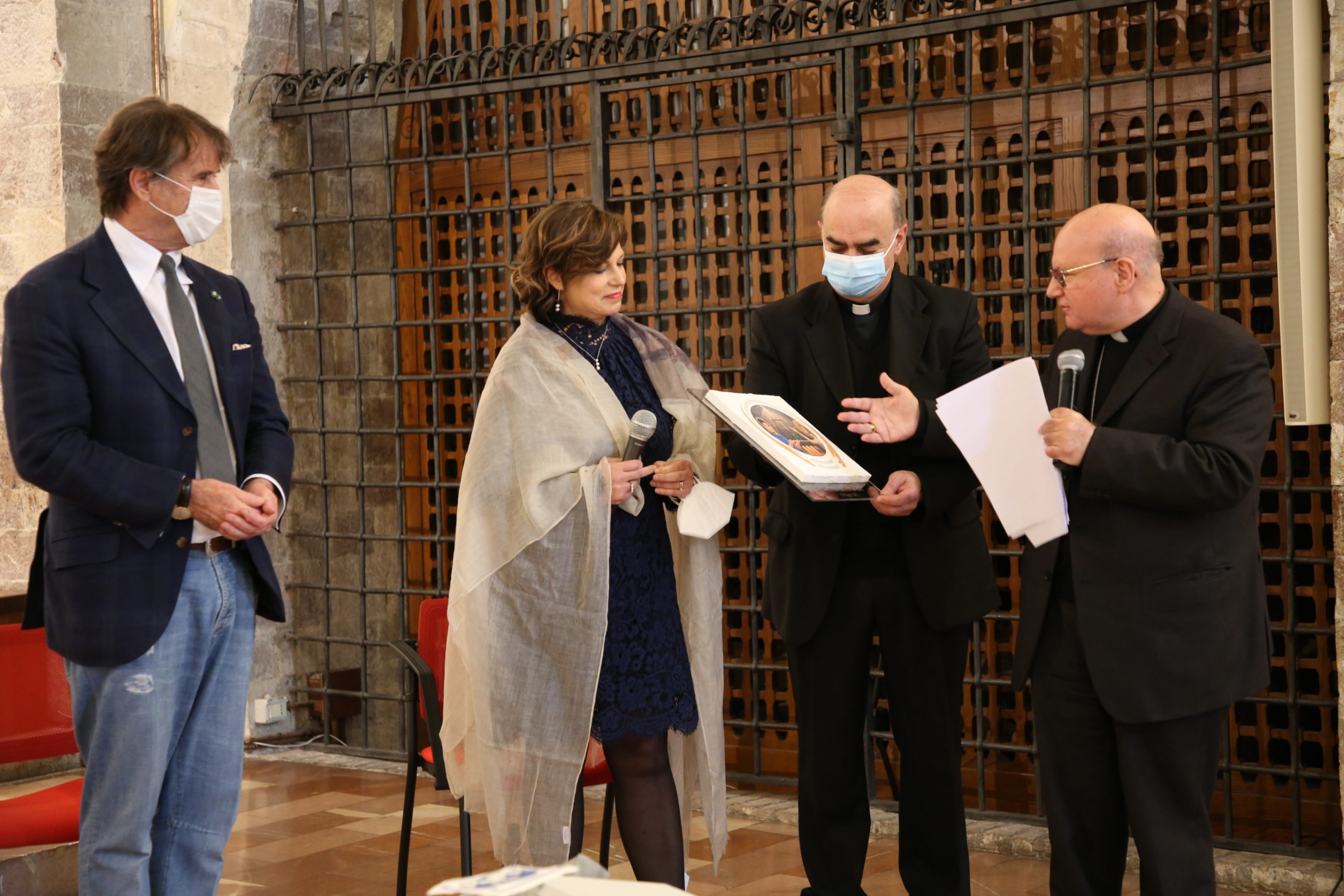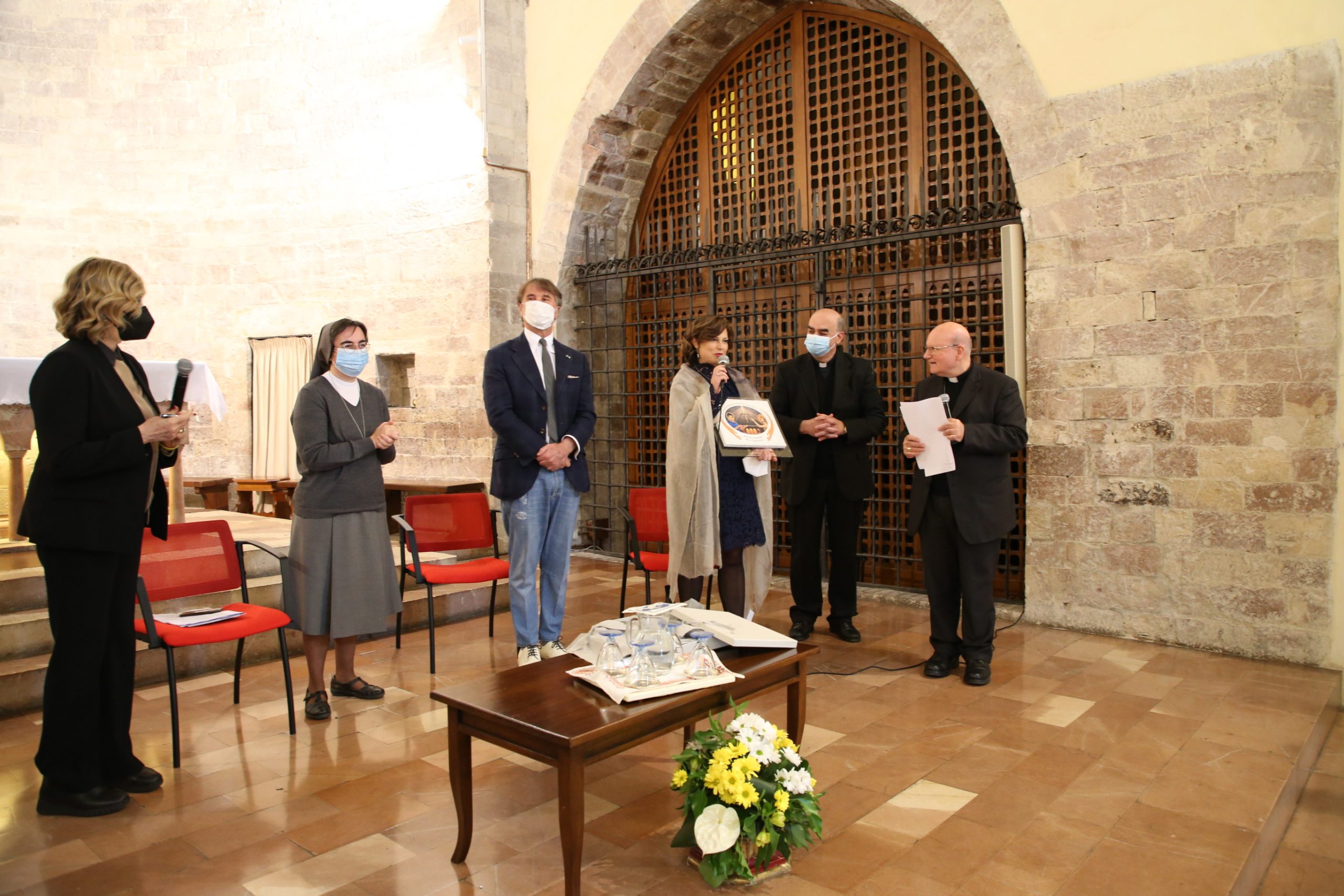Il premio costituito da quadro raffigurante San Francesco e Carlo Acutis, logo del premio stesso e da un foulard realizzato dall’azienda Brunello Cucinelli con la riproduzione dell’affresco della rinuncia dei beni del Poverello di Assisi, presente nella sala della Spogliazione, è stato ritirato dalla presidente dell’istituto Francesca Di Maolo. “Con il premio istituito dal Santuario della Spogliazione – ha detto monsignor Sorrentino – si vuole dare un contributo al processo innescato dal Santo Padre con l’evento internazionale Economy of Francesco si intendono sostenere ogni anno progetti produttivi e generativi partiti dal basso soprattutto nelle regioni più povere del mondo. Dobbiamo rifondare l’economia, mettendo al centro l’uomo, creando le condizioni affinché si attivino processi produttivi dal basso, generati grazie al ‘capitale della fraternità’.