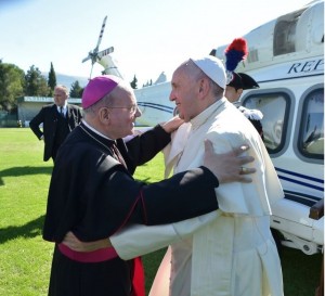 doveroso da parte mia ringraziare la Comunità di Sant’Egidio per il livello di internazionalità che ha saputo dare in questi anni allo Spirito di Assisi, le Famiglie francescane in particolare la comunità del Sacro convento per l’impegno profuso, i membri e i collaboratori della commissione diocesana che ha dato il suo importante apporto. Un grazie va alle forze dell’ordine per la sicurezza discreta che hanno saputo garantire e alle istituzioni tutte per il sostegno dimostrato. Infine – conclude il vescovo – un ringraziamento carico di affetto a papa Francesco che ci ha fatto dono di questa ulteriore visita”. Monsignor Sorrentino ha donato al Pontefice il libro del Sinodo. “Il Santo Padre aveva benedetto nel 2013 l’inizio del nostro cammino sinodale – ha sottolineato il vescovo – ; ora ha lasciato la sua benedizione per la Chiesa di Assisi proprio sul libro del Sinodo che è il frutto di questo cammino”.