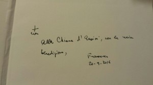 Il Santo Padre autografa il libro del Sinodo e benedice la “Chiesa di Assisi”
