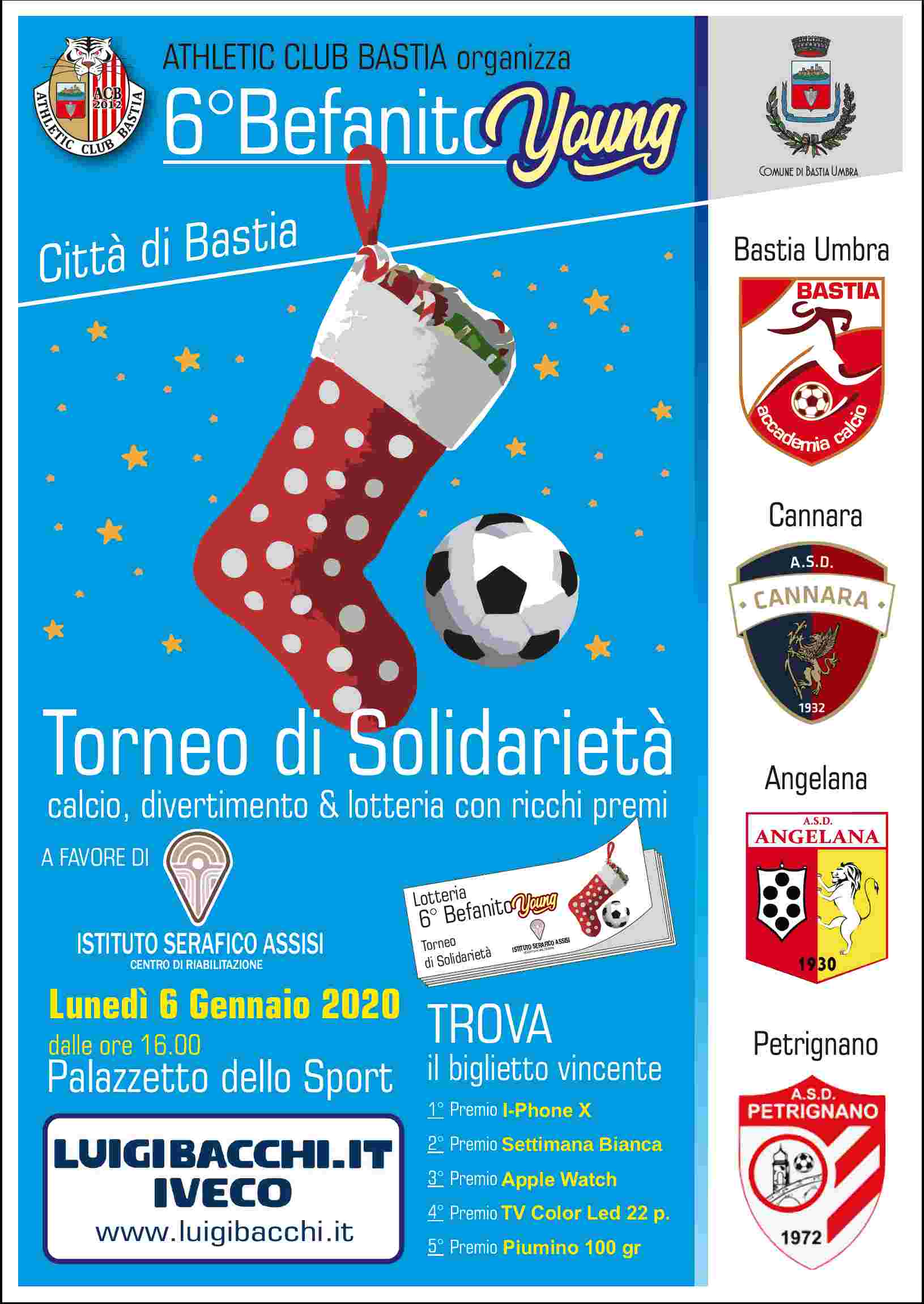 Dalle 16.00 Befanito Young Città di Bastia – Torneo di calcio e di solidarietà a cura di Ass. Athletic Club Bastia, presso Palazzetto dello Sport a favore di Ist. Serafico di Assisi