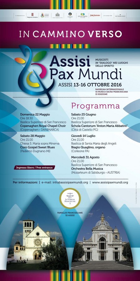In cammino verso Assisi Pax Mundi è una serie di appuntamenti di alto prestigio che ci accompagneranno alla terza edizione della rassegna internazionale di musica Sacra Francescana.