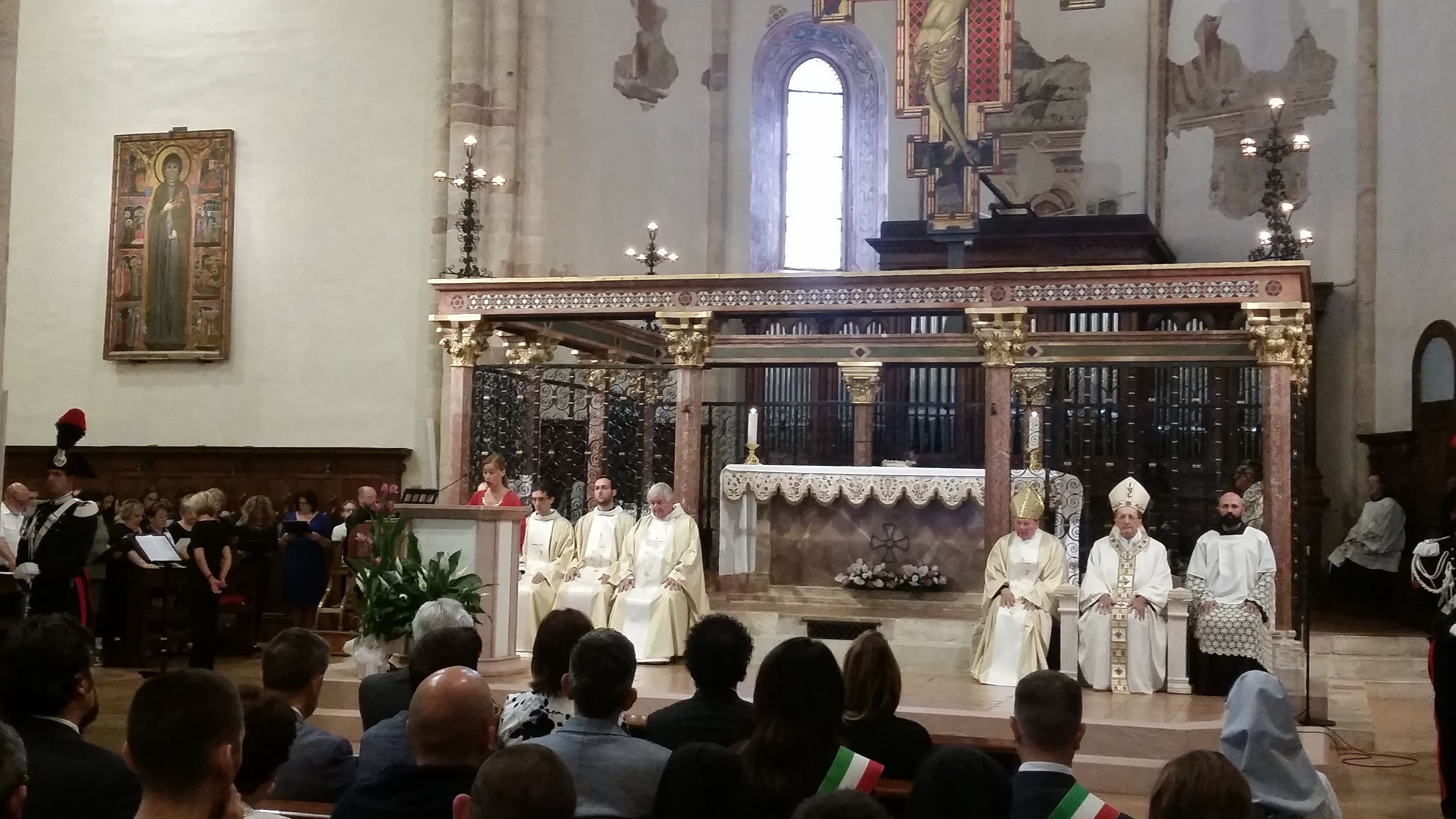 ASSISI – In una basilica gremitissima di fedeli, alla presenza della massime autorità civili e militari è stata festeggiata, giovedì 11 agosto, la solennità di Santa Chiara. “E’ significativo celebrare la solennità di Santa Chiara in questa splendida cornice di Assisi durante il Giubileo della Misericordia indetto da Papa Francesco – ha esclamato il cardinale Beniamino Stella, prefetto della Congregazione per il clero che ha presieduto la celebrazione eucaristica. Santa Chiara – ha aggiunto il cardinale – ascolta la voce di Cristo, lo segue con gioia e lo testimonia con amore. Ascoltare la voce di Gesù, ascoltare la chiamata di Cristo è il fondamento di ogni vita cristiana. Dio si fa umile e povero quasi a mendicare un posto nel nostro cuore. Sembra che Dio faccia fatica ad entrare nelle nostre città, nel nostro mondo. Viviamo immersi nel rumore, le difficoltà della vita quotidiana, le contrarietà, le sofferenze ci impediscono spesso di ascoltare la voce di Dio nella profondità del nostro cuore. Quando il cuore è sgombro da ogni rumore può accogliere la parola di Dio che libera e guarisce. La scelta di Chiara – ha proseguito – ci invita a frenare le ansie e a saperci ritagliare momenti di solitudine, preghiera e contemplazione. Siamo chiamati alla gioia. Papa Francesco ci richiama alla gioia e ci ripete che la carta d’identità del cristiano è la gioia, lo stupore davanti alla grandezza di Dio. Egli dice che un cristiano è un uomo e una donna con la gioia nel cuore. Non esiste un cristiano senza gioia. Chiara trova la ragione della sua gioia contemplando Gesù. Siamo chiamati all’amore, alla carità. Questa chiamata del Signore ci invita ad andare verso gli altri. Si tratta come ricorda Papa Francesco di una gioia nell’esercizio della carità missionaria. E’ necessario rimanere nell’amore del Signore per portare frutti nel mondo. Santa Chiara ci invita a contemplare questo amore per Cristo. Dobbiamo lasciarsi accendere sempre più fortemente da questo ardore di carità. Questo è un imperativo per tutta la Chiesa il cui annuncio risulta credibile solo se essa si concentra sulle cose essenziali. Penso che possiamo tutti fare nostro il desiderio di Papa Francesco che ha detto ‘Come vorrei una chiesa povera per i poveri’. Questa è la chiesa che Francesco e Chiara hanno riparato e adesso tocca a noi. Prendiamoci un pò di tempo quotidiano per il Signore; impegniamoci ad offrire la nostra vita nell’esercizio della carità. In questo modo – ha concluso – anche noi potremmo essere strumenti operosi che il Signore vorrà adoperare per riparare la sua chiesa”.