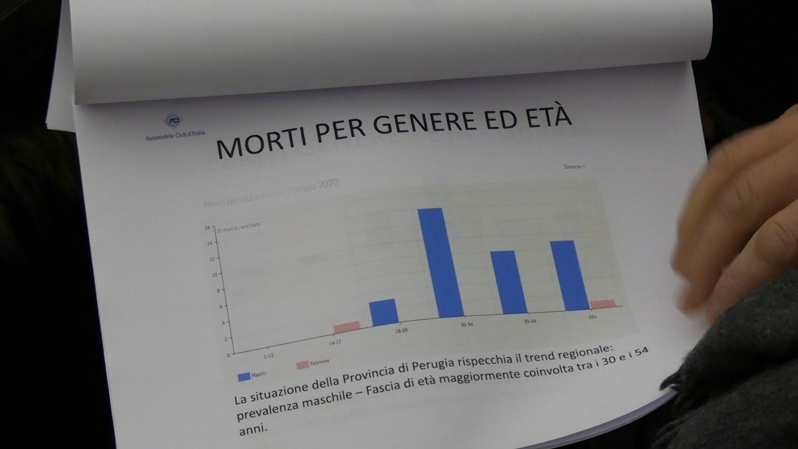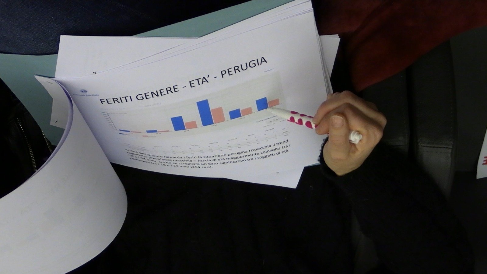 Nel Perugino, la mortalità stradale ha interessato quasi esclusivamente i maschi di età adulta, mentre le donne decedute sono state solo due (tre in Umbria). “Nella regione – ha ricordato Milletti – il 33 per cento dei decessi per incidente stradale coinvolge uomini tra i 30 e i 54 anni alla guida del proprio veicolo. L’utenza debole della strada rappresentata dai pedoni costituisce il 20 per cento dei morti con una maggiore incidenza sui soggetti con più di 65 anni di età”. “Rispetto agli anziani – ha ricordato Campi –, come facciamo per altre categorie, abbiamo organizzato corsi per l’educazione alla sicurezza stradale avvalendoci dell’Autodromo di Magione, uno dei pochi impianti del centro Italia di riferimento non solo per lo sport motoristico, ma anche per questo tipo di attività. Rispetto agli incidenti stradali dobbiamo maturare la consapevolezza che siamo allo stesso tempo vittime e protagonisti del problema e che ognuno di noi può fare qualcosa per cercare di migliorare la situazione”. In Umbria, nel 2020 gli incidenti sono avvenuti principalmente su strade urbane: il 54,7% in città. Un andamento che si conferma anche nella provincia di Perugia dove 641 incidenti su un totale di 1.221 (circa il 52,4%) è avvenuto nei centri abitati. L’autovettura privata continua a essere il veicolo maggiormente interessato dai sinistri e nella provincia di Perugia si tratta del 74, 58 per cento dei veicoli coinvolti. “Sulla rete viaria principale – ha aggiunto Milletti –, la frequenza di incidenti è inferiore alla media italiana, ma gli incidenti sono più gravi”.