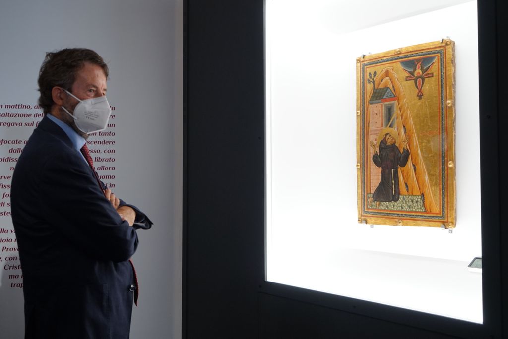 Alla presenza del ministro della Cultura Dario Franceschini e del direttore delle Gallerie degli Uffici Eike Schmidt, si è aperta l’esposizione “inTORNO a Francesco”, nella Sala della Pinacoteca, dove è possibile ammirare fino al 6 gennaio 2022 l’opera “San Francesco riceve le stimmate” attribuita attribuita al Maestro della Croce n. 434.